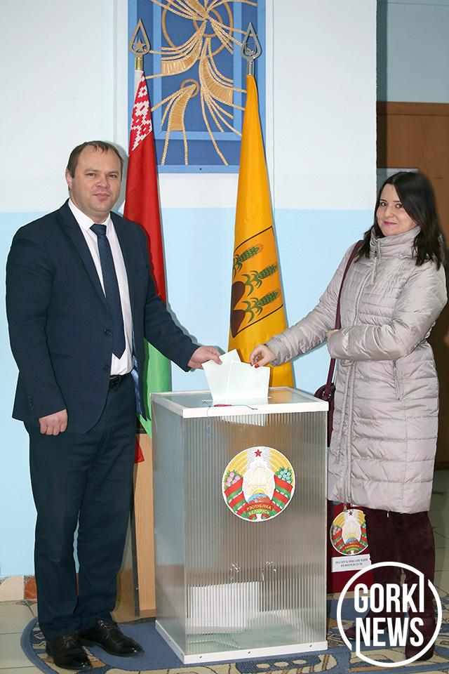 Одними из первых на Озерном участке № 5 для голосования по референдуму свои голоса отдали председатель Горецкого райисполкома Михаил Гулый и его супруга Татьяна.