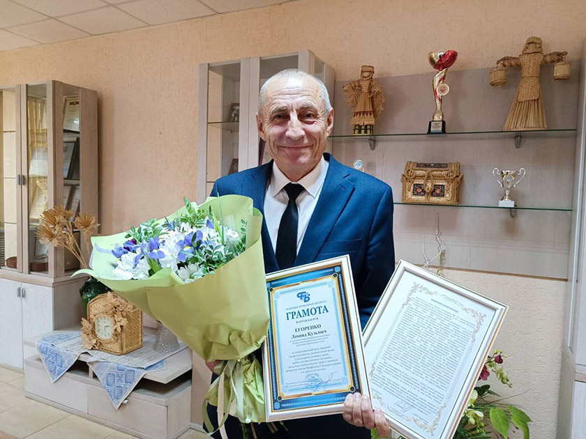Председатель РК профсоюза работников образования и науки Леонид Егоренко отмечает 65-летний юбилей