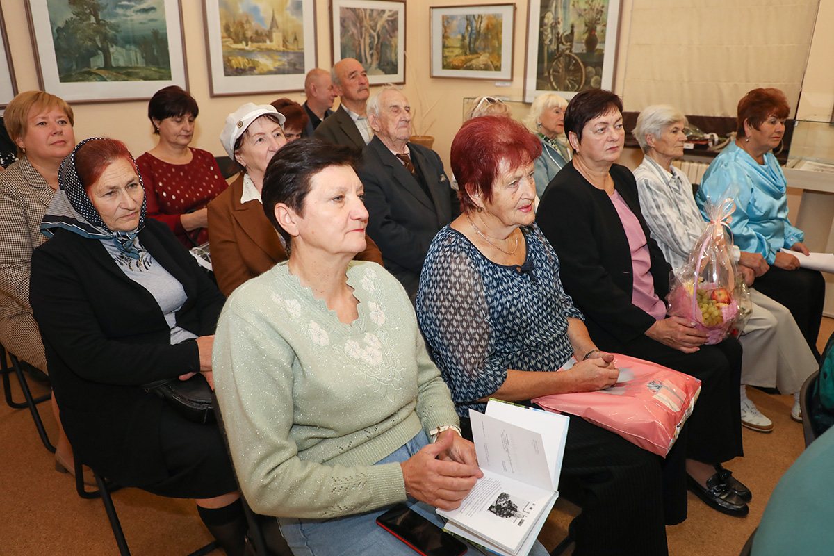 Поздравить поэтессу со знакомым событием в ее литературной деятельности, выходом шестого по счету сборника, пришли почитатели ее поэтического творчества, сын Александр, друзья, родные и, конечно, коллеги по перу, члены коллектива «Роднае слова» и его руководитель Людмила Дерюжкова, члены районной организации общества инвалидов, районного совета ветеранов, участники народного академического хора «Спадчына».