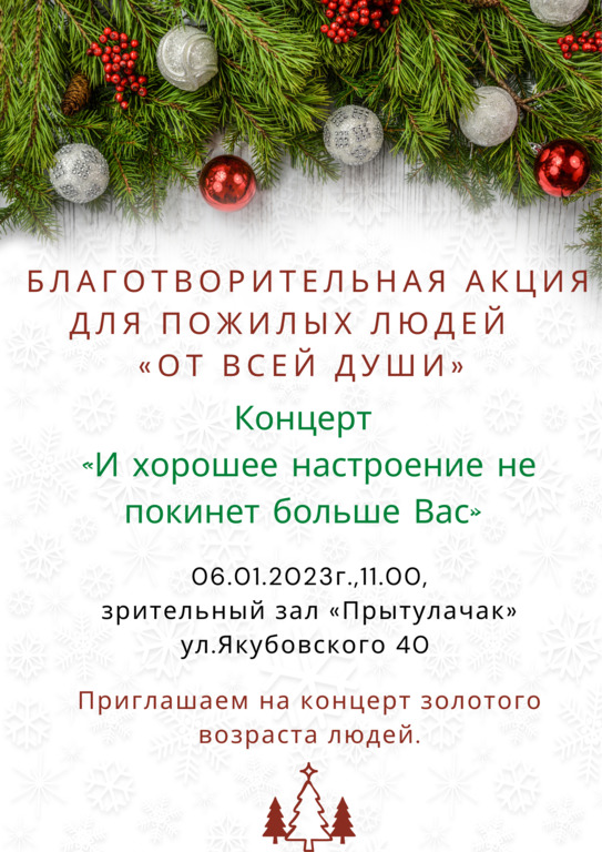 Приглашаем на праздничный концерт Gorkinews 3 января 2023 16:46 ГУК «Централизованная клубная система Горецкого района» Теги концертпопуляр Предыдущая новость Следующая новость Лукашенко утвердил новую редакцию правил приема в вузы Новая традиция: благотворительная акция для пожилых «От всей души» стартовала в Беларуси