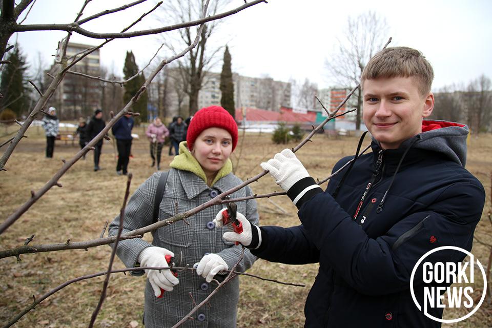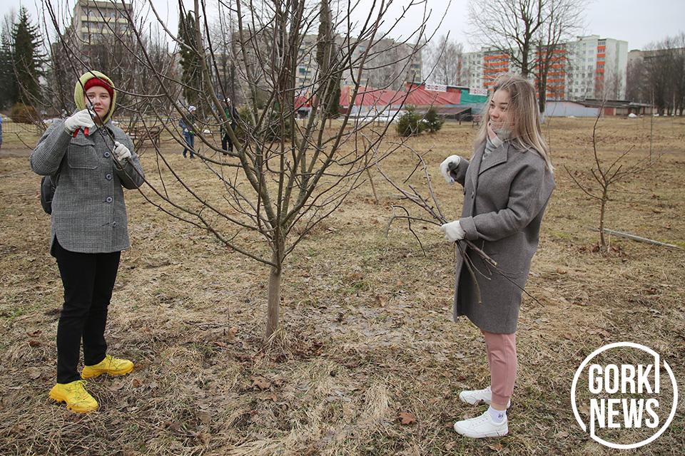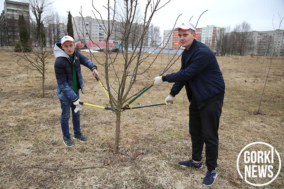 Члены молодежного Парламента при районном Совете депутатов, второкурсники Мария Парфенькова и Дмитрий Степанович говорят, что принимают участие в таком трудовом десанте с ответственностью, радостью и любовью к окружающей среде. «Это первая в нынешнем году весенняя акция нашего молодежного Парламента. Хотим внести свой вклад в поддержание культуры благоустройства в нашем городе, чтобы красивых уголков природы было как можно больше, а вкусными яблочками поскорее могли полакомиться дети. На наш взгляд, хорошо бы здесь установить скамейки, чтобы люди могли отдохнуть в тени деревьев», — делится впечатлениями Мария.