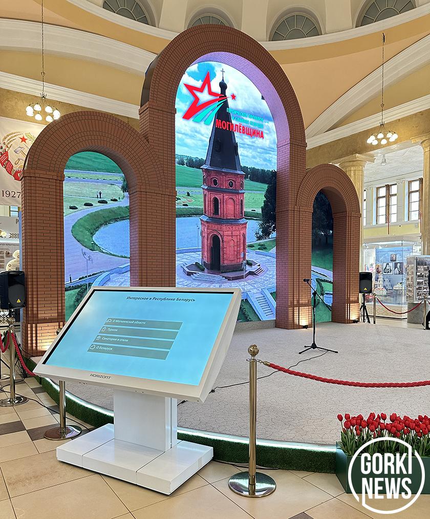 Белорусский павильон заметен издалека. Его можно узнать по нашим брендам, выставленным у входа, – тракторной технике МТЗ и огромной шине – продукции бобруйского предприятия «Белшина». На входе посетителей встречает яркая историческая экспозиция «Могилевщина – героическое прошлое и славное будущее». Интерактивный стенд представляет все самое интересное, что есть в нашей области и стране: предприятия, туризм, санатории и отели.