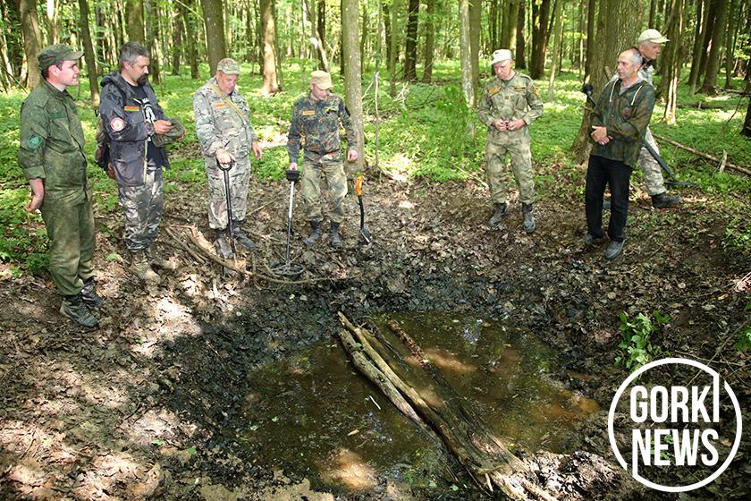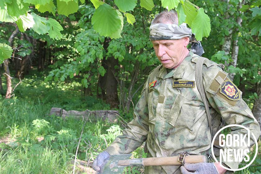 Местонахождение этого объекта 1941 года подсказал для проведения экспедиции наш земляк, водитель автопарка № 17 Алексей Персиков, который увлекается изучениемистории. Он родом из Кричева.В детстве увлекался палеонтологией. В меловых карьерах находил немало древних ракушек и других окаменелостей. В 1997 году переехал в Горецкий район и стал интересоваться краеведением. 20 лет назад начал заниматься приборным поиском. К слову сказать, его супруга, заведующая детским садом № 3 Лариса Минина, — историк по образованию, поддерживает мужа в его общественной деятельности. «Участие в поисковой экспедиции — это не только мое хобби, но и личный долг перед погибшими во время Великой Отечественной войны родственниками. Например, у меня с войны не вернулся дед. Очень важно вернуть из небытия как можно больше наших героев, чтобы мы, потомки, отдали им дань уважения за то, что они погибли за нас, наше мирное небо над головой, и похоронили их со всеми воинскими почестями. К сожалению, время работает против нас. С каждым годом все труднее находить останки. Для кого-то это кости, а для меня они ассоциируются с живыми людьми, которые героически воевали, не дожили до Победы, но сделали все от них зависящее для ее приближения. По сути мы находим потерянных людей, возвращаем их из забвения и даем по-хрис­тиански упокоение. Они это заслужили», — сказал Алексей Алексеевич.