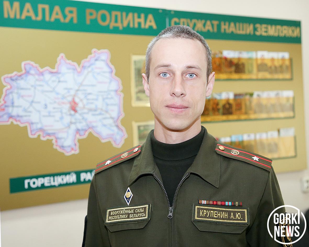 Военную службу по контракту в Вооруженных Силах Республики Беларусь лейтенант Крупенин начинал заместителем военного комиссара по территориальной обороне Дрибинского райвоенкомата, а с февраля 2020 г. переведен в Горки. Он решает задачи по организации и всестороннему обеспечению территориальной обороны, формированию территориальных войск, готовых в случае необходимости встать на защиту района. Также дополнительно отвечает за очистку местности от взрывоопасных предметов времен войны. За эту весну в районе уже уничтожено две таких находки, а бывали годы, когда количество заявок доходило до сорока. В памяти две крупные находки – 50-ти и 100-килограммовые авиабомбы в деревнях Куртасы и Костюшково.