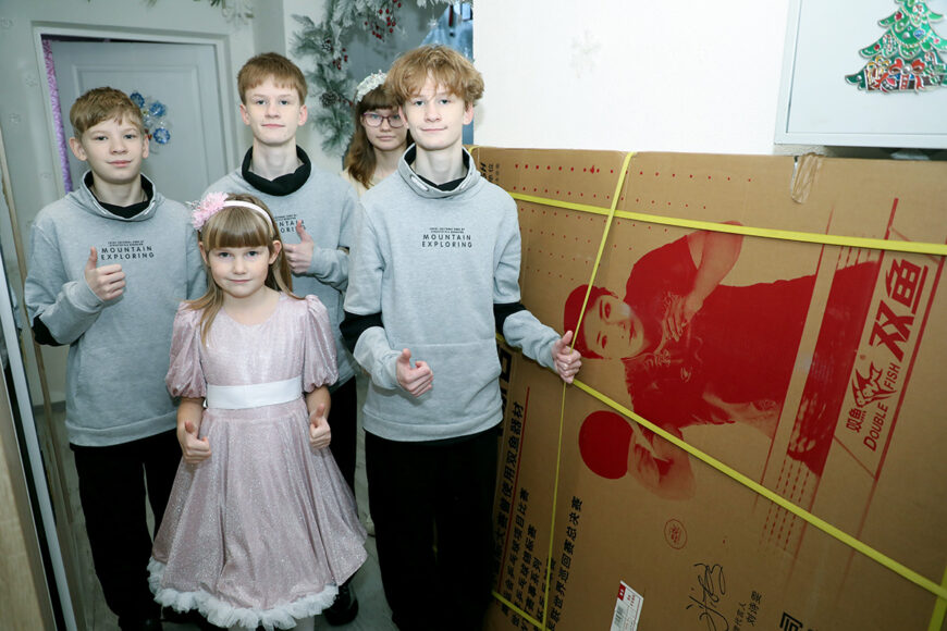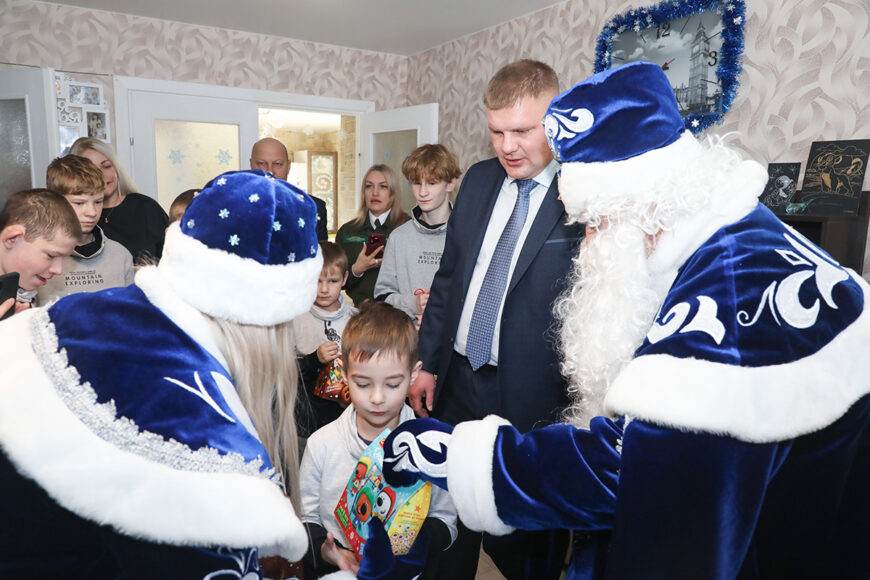 Председатель райисполкома Николай Орлёнок поздравил ребят и вручил сладкие подарки, а также замечательный подарок для дружных семейных вечеров — теннисный стол.