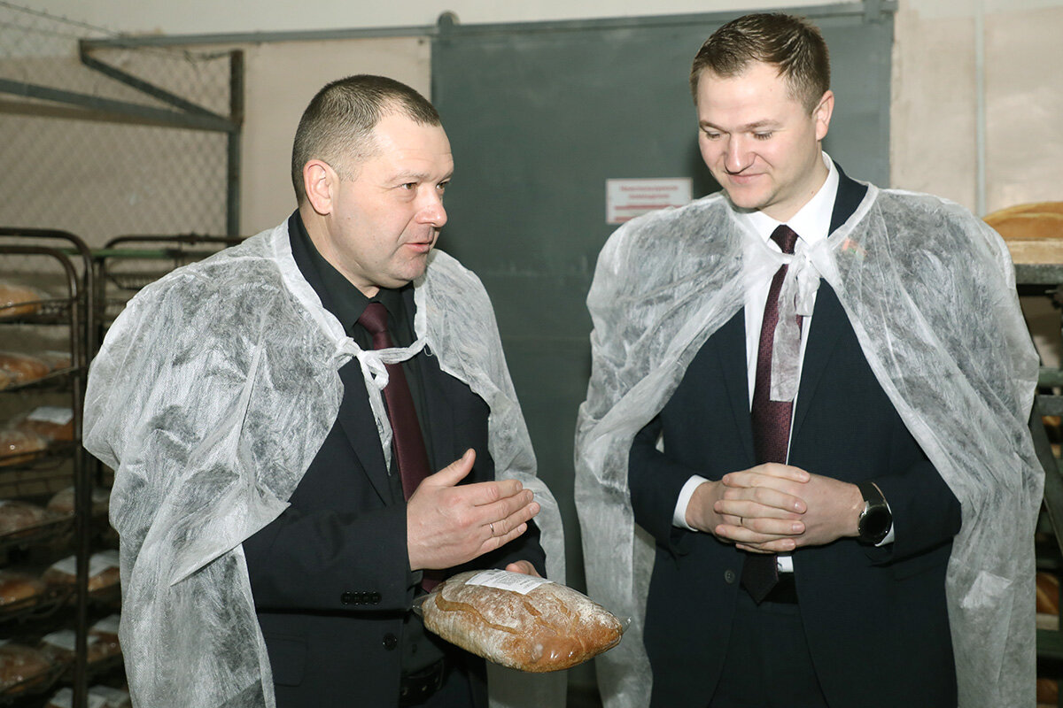 Директор предприятия Дмитрий Губарев провел экскурсию по бытовым помещениям и производственным цехам, показал современное оборудование, на котором производят более 60 наименований хлебобулочной продукции и 25 видов кондитерских изделий.