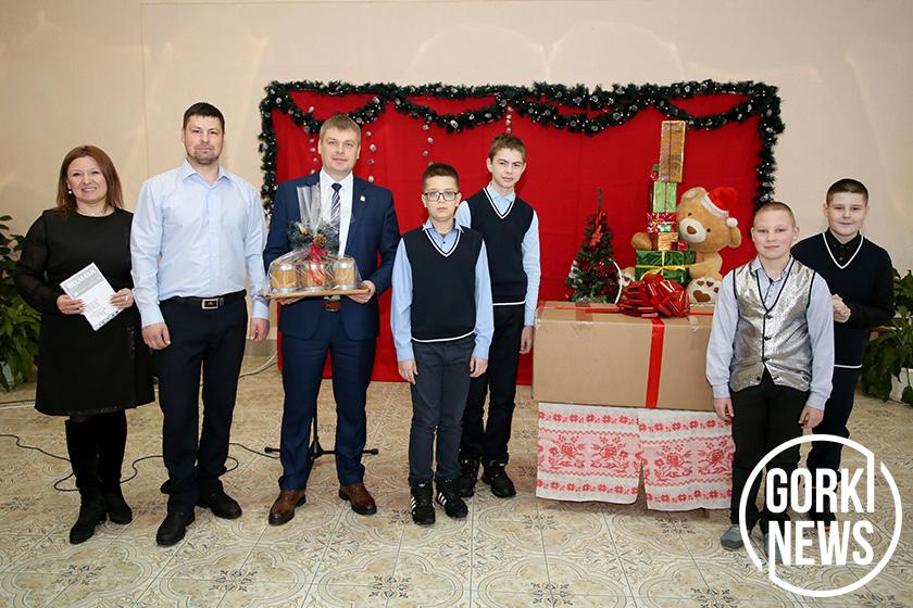 В благодарность за исполнения мечты ученики Дмитрия Калиновского презентовали Александру Чеботареву сувенир из дерева, а Захар Хмурович — музыкальный подарок для всех участников этой теплой встречи.
