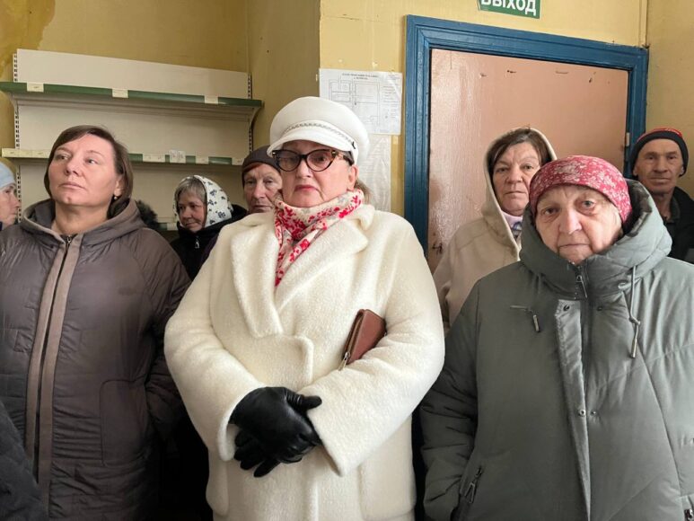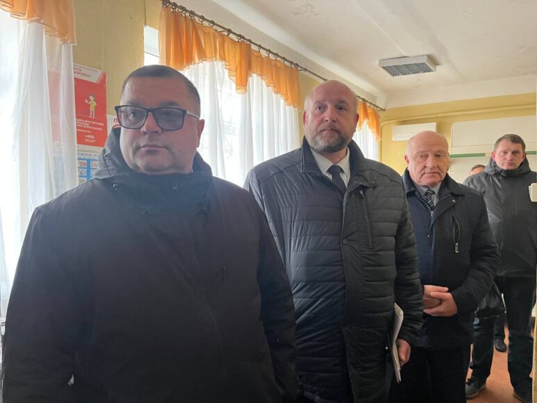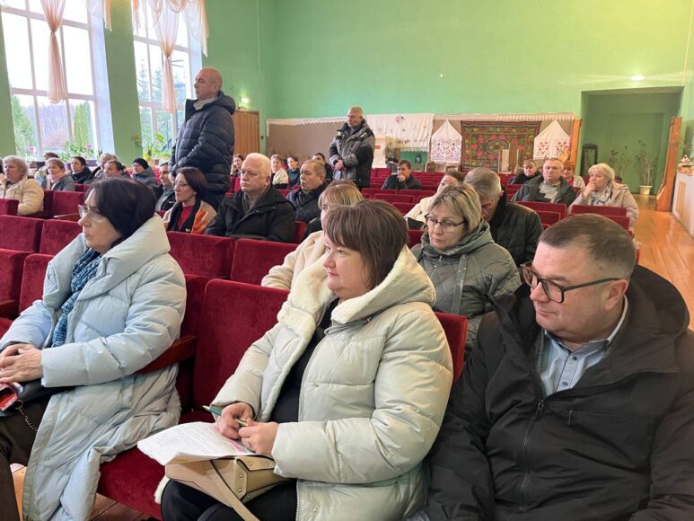 К сельчанам под руководством председателя районного Совета депутатов Максима Потапенко приехала делегация: вертикаль власти и руководители служб и организаций района.