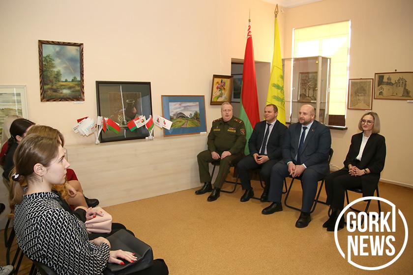Общение началось с экскурсии. Председатель райисполкома Михаил Гулый, председатель районного Совета депутатов Максим Потапенко, военный комиссар Горецкого и Дрибинского районов Александр Шкиндеров, председатель РО ОО «Белорусский фонд мира» Ольга Киммель вместе с молодыми специалистами сфер культуры и образования, прибывшими на первое рабочее место в наш район, узнали про основные этапы истории Горецкого края начиная с глубокой древности и до наших дней.
