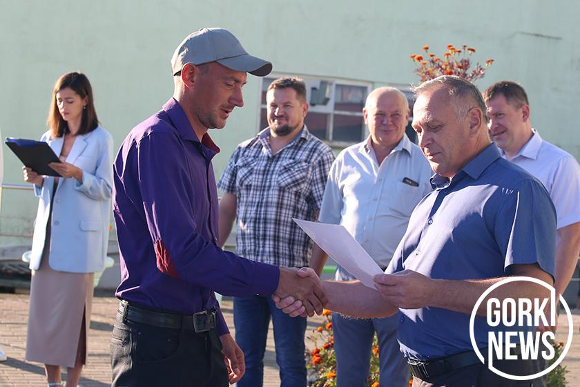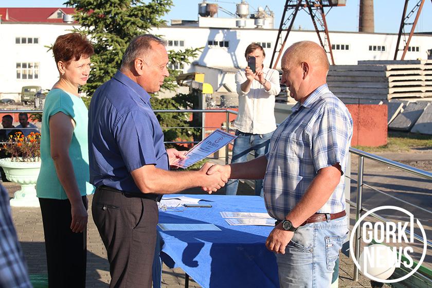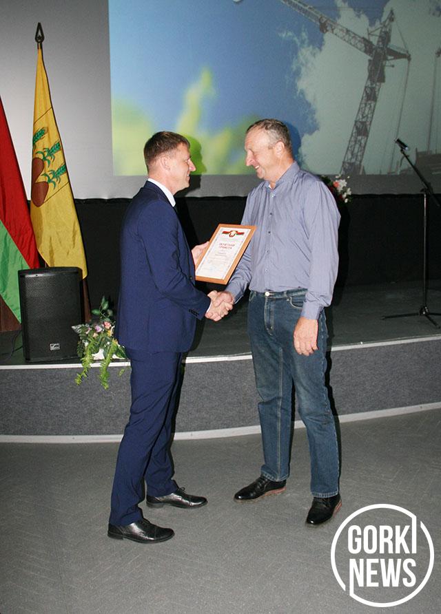 От районного исполнительного комитета коллектив поздравил заместитель председателя райисполкома Сергей Котов. Он вручил Благодарности машинисту крана Анатолию Дроздовскому и каменщику Тимуру Агаеву.