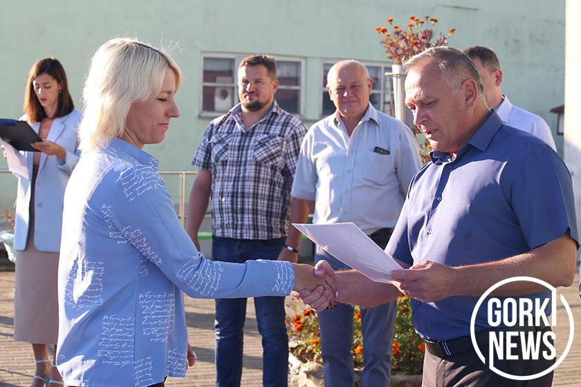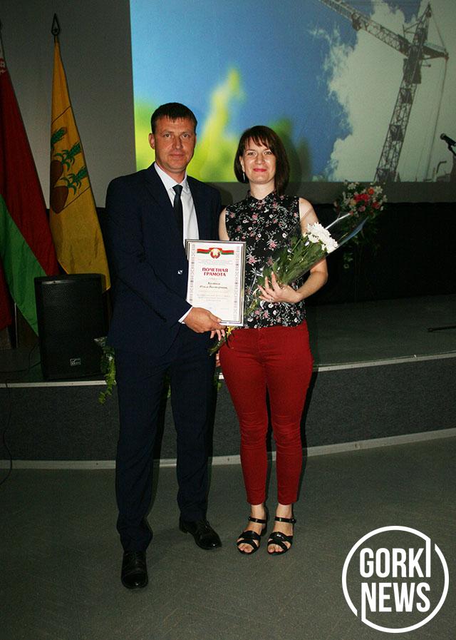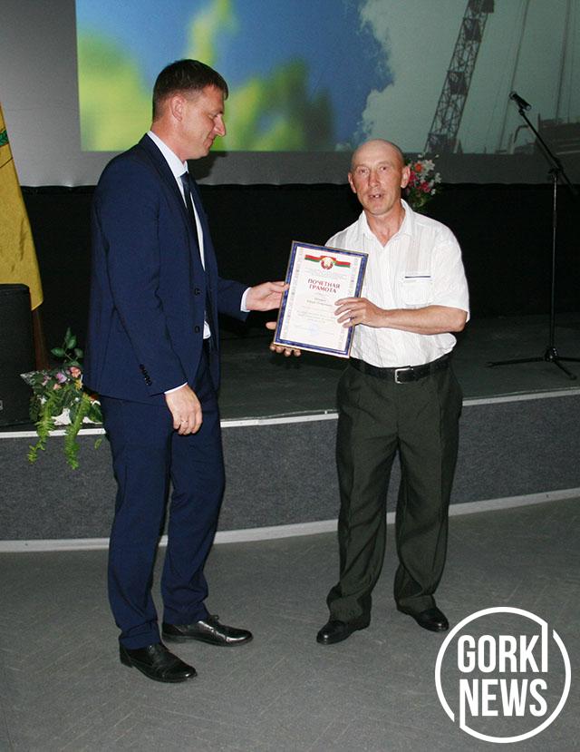 А в кинотеатре «Крыніца» чествовали тружеников ГУК «ДСП Горецкая СПМК». Со словами поздравления к ним обратился заместитель председателя Горецкого районного исполнительного комитета Сергей Котов. Лучшим работникам Сергей Викторович вручил Благодарность и Благодарственное письмо райисполкома: Благодарность — электромонтёру-линейщику по монтажу воздушных линий высокого напряжения и контактной сети пятого разряда Денису ИСАЧЕНКО, Благодарственное письмо — монтажнику санитарно-технических систем и оборудования пятого разряда, бригадиру Владимиру ЕФИМЕНКО.