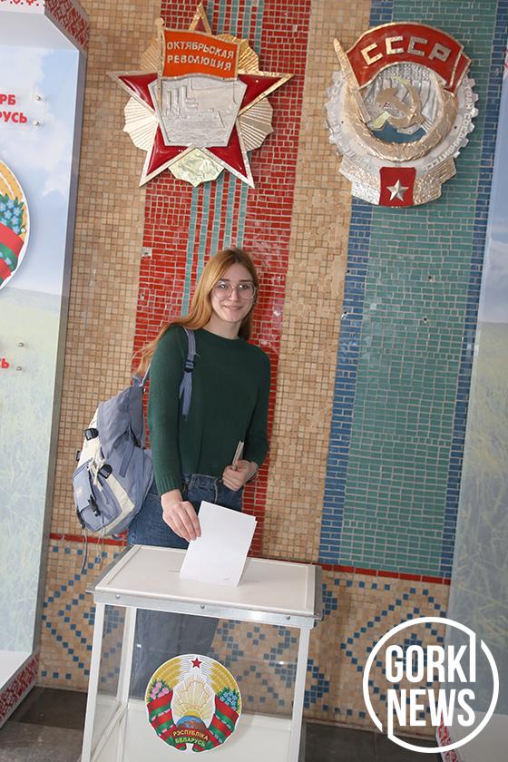 Первыми опускают бюллетени в урну второкурсники экономического факультета Ольга Романова и Артем Миронович, которые впервые участвуют в электоральной кампании. «Для нас это дебют в таком важном мероприятии, поэтому немного волнуемся. Пришла проголосовать досрочно, потому что на выходных уезжаю домой, в Оршу, — признается Ольга. — Это наш первый вклад в политическое будущее своей страны. Счастлива, что теперь и я могу голосовать на выборах. И от нашего голоса зависит, какие люди будут представлять интересы жителей района, в котором и мы сегодня живем, принимать законы и помогать другим. Приятно было получить такие важные подарки на память. Ведь знать свои права и обязанности, закрепленные в Конституции, обязан каждый человек».