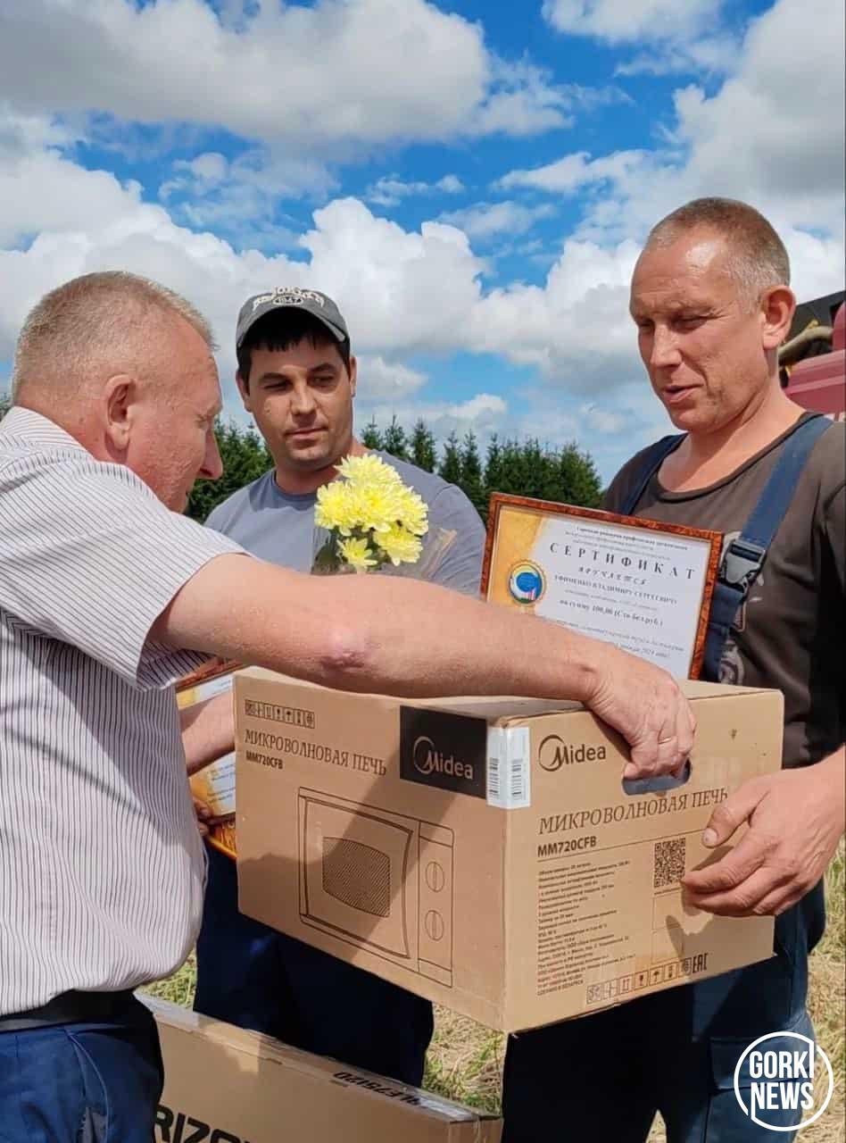 Героев жатвы чествовали председатель райисполкома Михаил Гулый, директор ОАО «Горецкое» Владимир Черников, председатель районного объединения профсоюзов Марина Бандык, председатель РК профсоюза работников АПК Елена Чаплыгина, первый секретарь РК ОО «БРСМ» Сергей Сивуха представители ОАО «Молочные горки». Лидеры собрали внушительное количество подарков: телевизор, микроволновую печь, пылесос, денежные премии. В ОАО «Горецкое» убрано 60% площадей. А значит, у наших передовиков есть все шансы покорить новый рубеж.