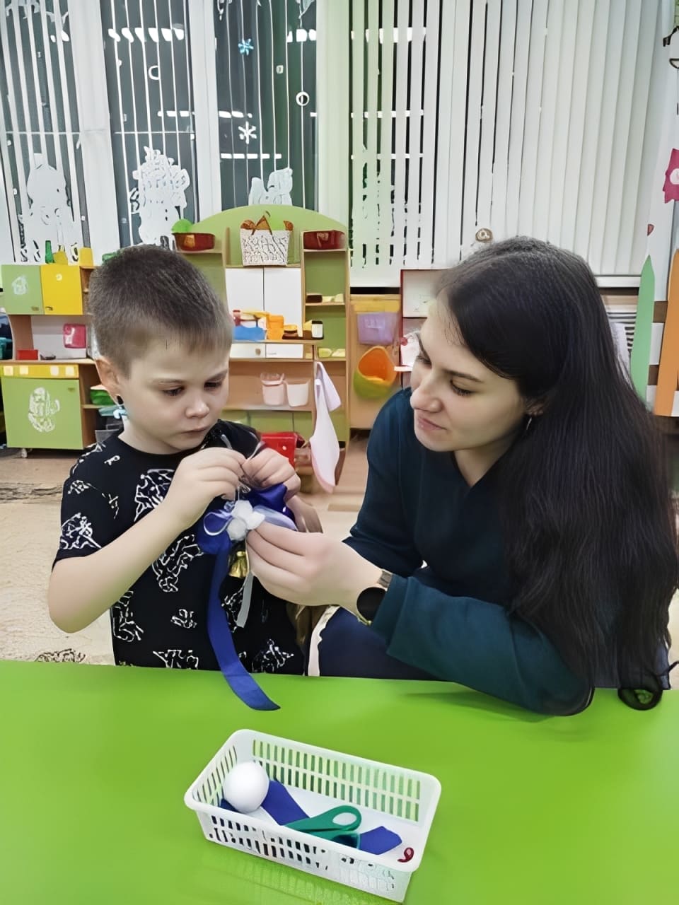 Воспитатель дошкольного образования средней группы интегрированного обучения и воспитания Юлия Ставская провела для ребят и их родителей увлекательный мастер-класс по изготовлению новогодних игрушек. Мероприятие стало не только возможностью проявить творческие таланты, но и возможностью объединить семьи общим делом. Воспитанники и взрослые с энтузиазмом взялись за дело: вырезали, клеили, украшали и мастерили эксклюзивные елочные игрушки из разнообразных материалов.