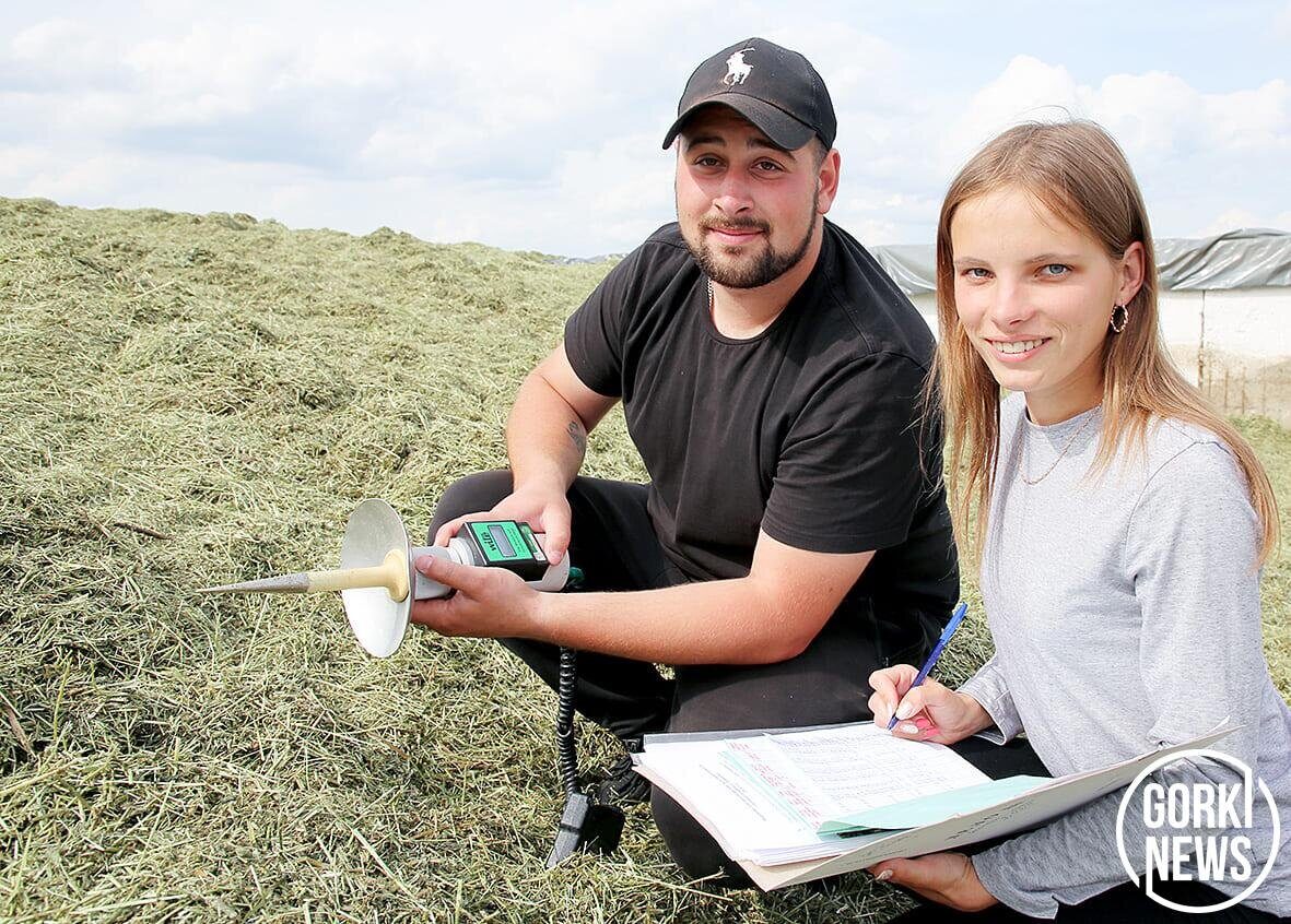 Все механизаторы и водители в составе отряда трудятся ответственно и усердно с утра и до позднего вечера. Для их бесперебойной работы налажено горячее двухразовое питание прямо с доставкой в поле, а также к сенажной яме, где трамбовку ведут Сергей Жабыко («Коптевская Нива»), Игорь Боровиков и Михаил Мишульский (Ленино). А контроль за качеством сенажа ведут молодые специалисты племзавода, агрономы Анастасия Новикова и Максим Боровиков, измеряя каждые два часа температуру массы и ее влажность.