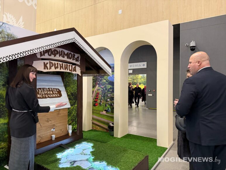 Особое внимание Сергей Константинович уделил тому, как представлена Могилевщина в экспозиции. Он с теплотой отметил, что путешествие по региону на выставке начинается с знакового сакрального места Приднепровья — Трофимовой криницы.