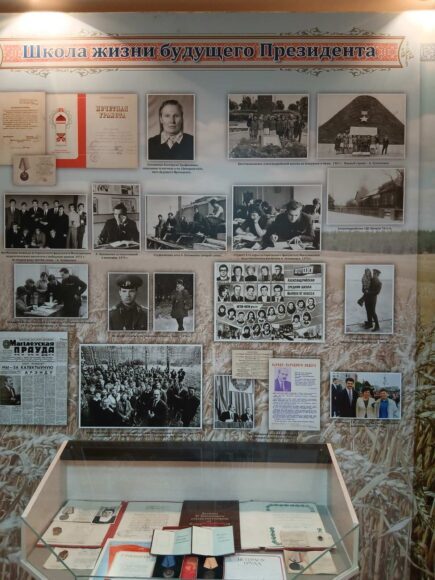 В учительском столе — книги и атласы, в современном корпусе школы — музей села, где собраны старинные фотографии, документы и воспоминания коллег о молодом педагоге Лукашенко. Особенно трогательно смотрится групповая фотография учеников, среди которых можно разглядеть будущего Президента.