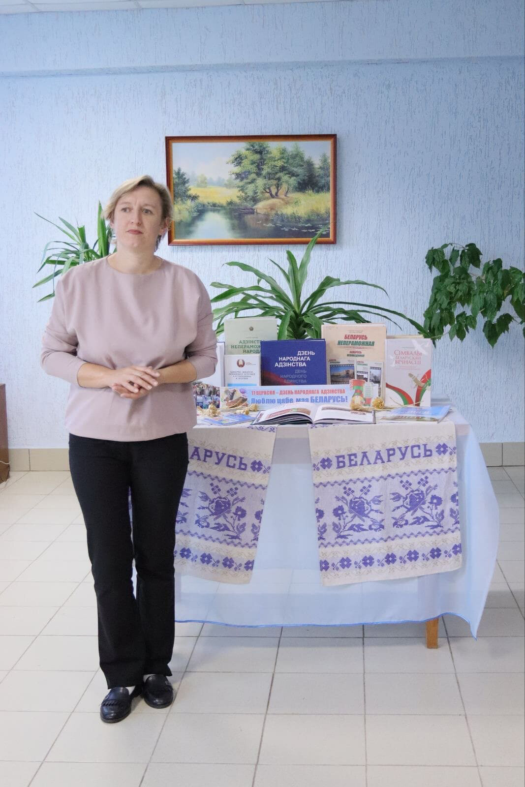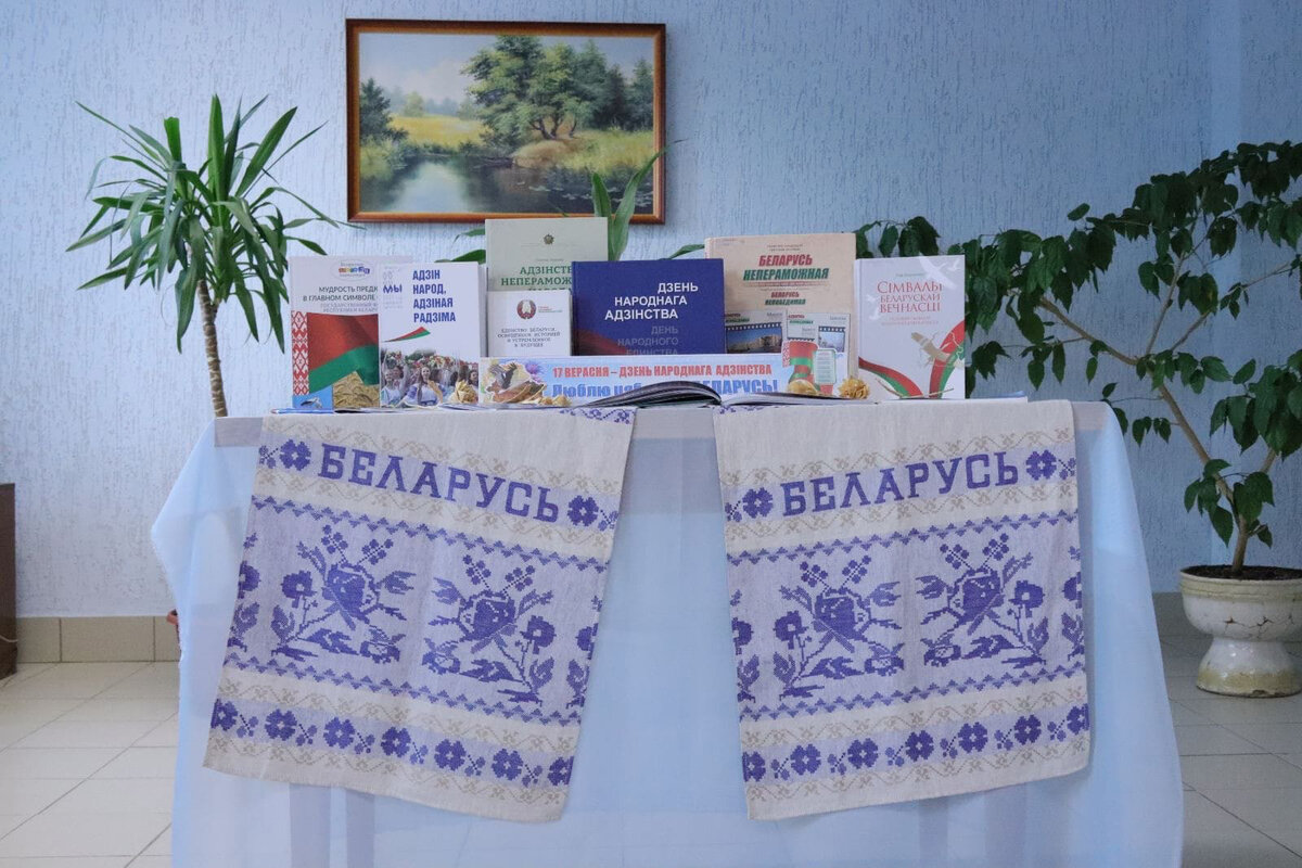 Сотрудниками центральной библиотеки имени Максима Горецкого была представлена литературная выставка, где экспонировались книги об истории и современности, о государственных символах нашей страны.