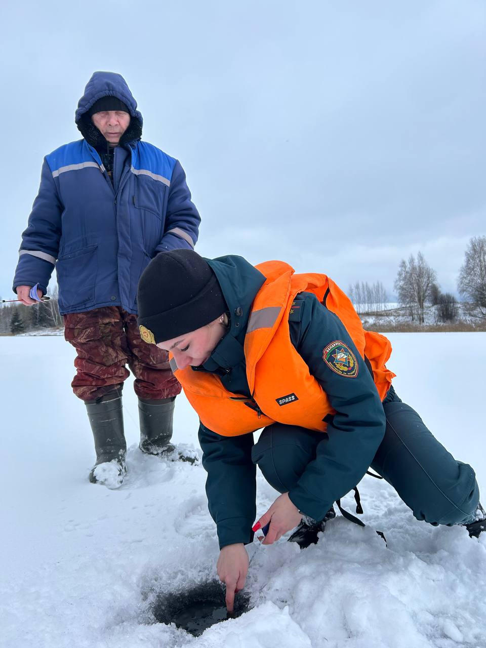 Спасатели проверили безопасность зимней рыбалки на озерах района