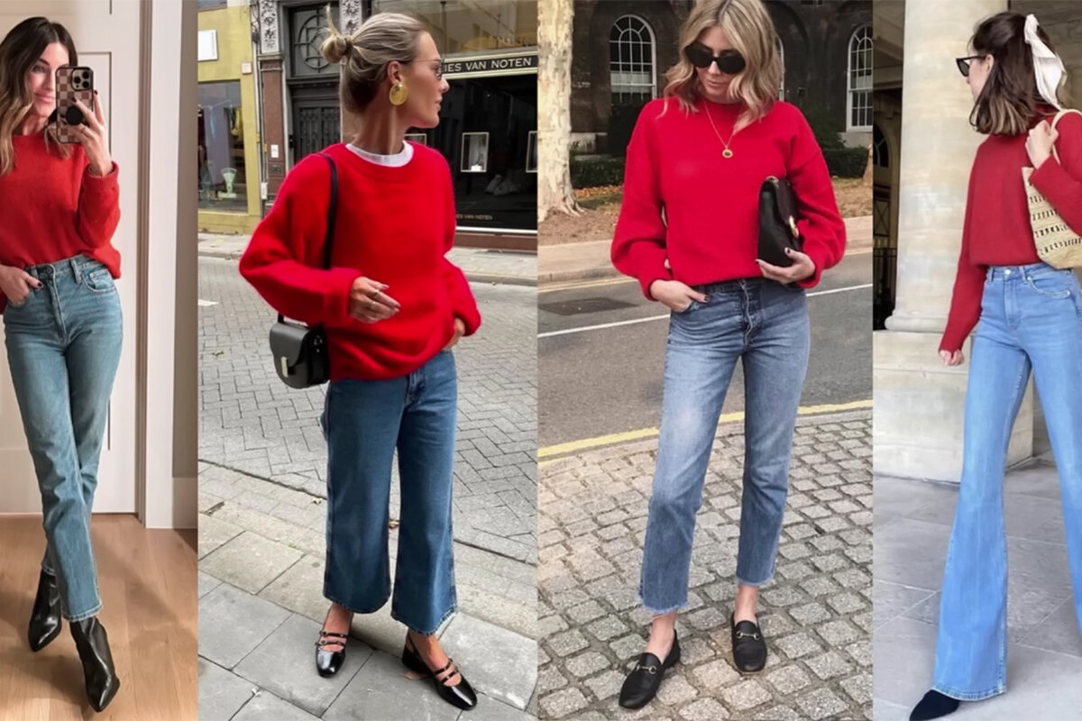 Сочетание красного цвета с голубым денимом. Оно будет выглядеть актуально этой весной. Например, джинсы в сочетании с джемпером или свитером в красном оттенке. Дополните этот образ любыми аксессуарами, к примеру, черного цвета: лоферами, балетками, ботильонами, сумочкой или солнечными очками. Еще один вариант: юбка из денима и белая футболка, а сверху – красный кардиган или твидовый жакет. В этом случае завершить образ можно будет белыми кедами, туфлями, сумочкой. Насыщенный красный цвет не покидает модные подиумы уже несколько сезонов, поэтому стилист советует хотя бы один-два элемента в этом цвете иметь в своем гардеробе.