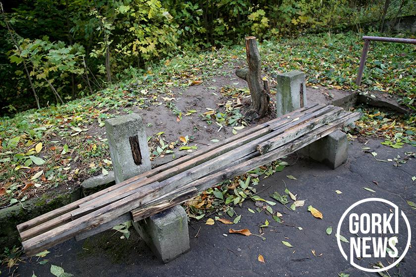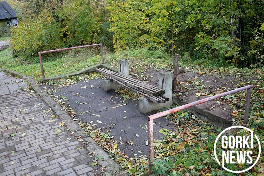 Лавочка, которая расположена на площадке для отдыха после форсирования трудного участка, сломана. На самой площадке отсутствует урна для мусора, вокруг разбросаны упаковки от печенья, шоколадок, пластиковые бутылки и др. Приходится перевести дух на ногах и ради посещения поликлиники приступить к покорению новых препятствий.