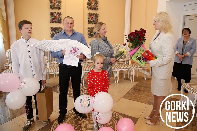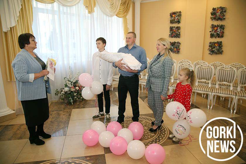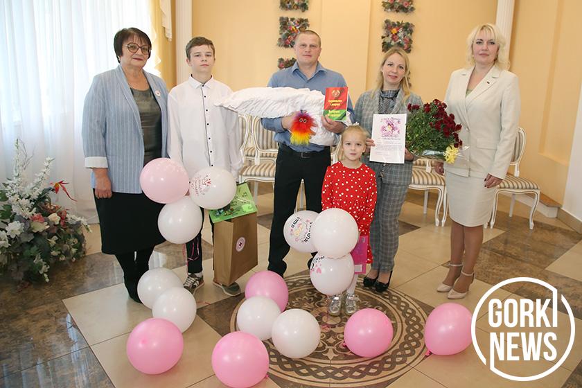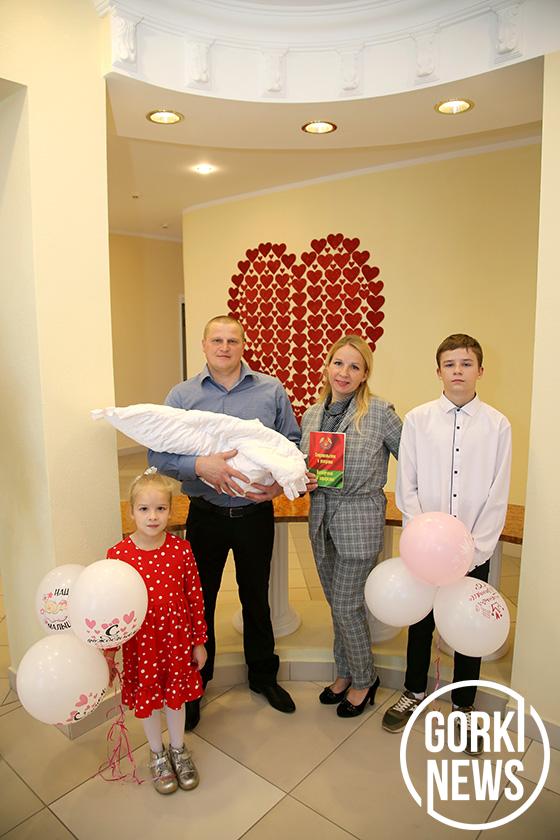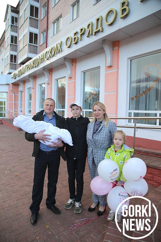 В преддверии теплого праздника — Дня матери— в отделе ЗАГС райисполкома для новоиспеченных многодетных родителей из Горок Виктории и Михаила Пековых подготовили небольшое торжество. Для семьи провели церемонию регистрации рождения третьего ребенка — Екатерины, которая появилась на свет 7 октября.