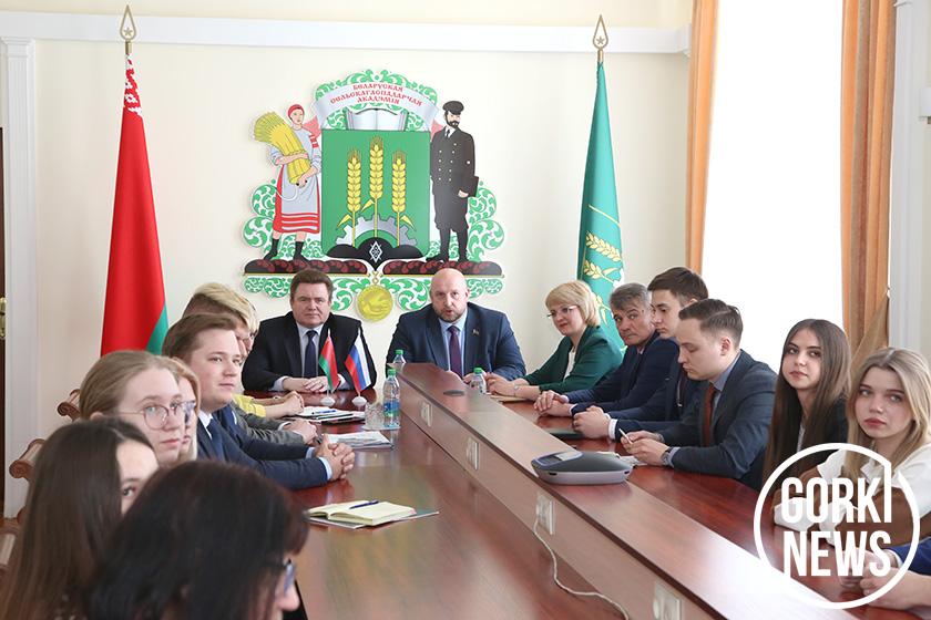 В телемосте с нашей стороны принимали участие председатель Горецкого районного Совета депутатов Максимом Потапенко, заместитель председателя райисполкома Лариса Кривицкая, ректор академии Виталий Великанов, руководящие кадры и лидеры общественных объединений вуза, студенты, в том числе россияне и выпускники классов аграрной направленности, и учащиеся.