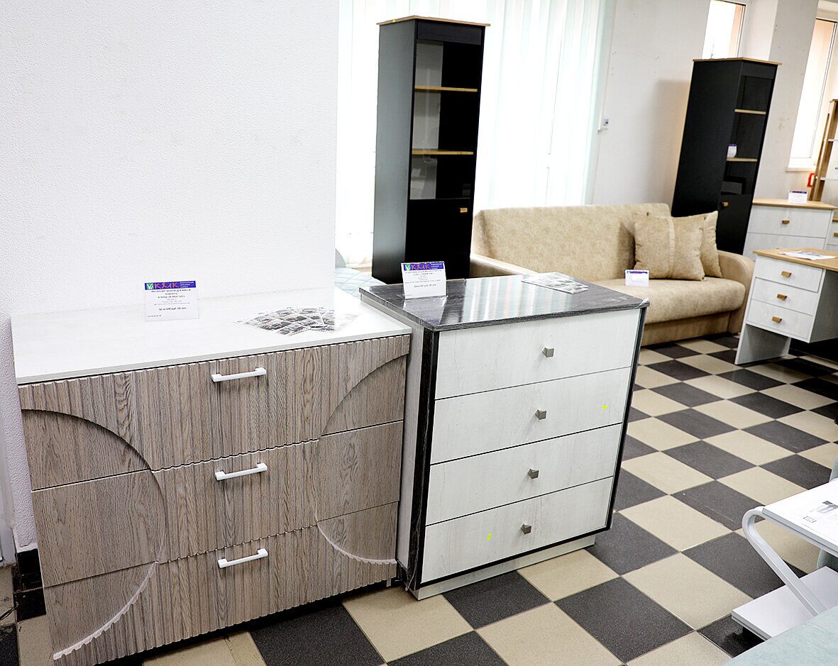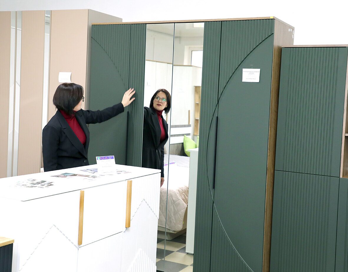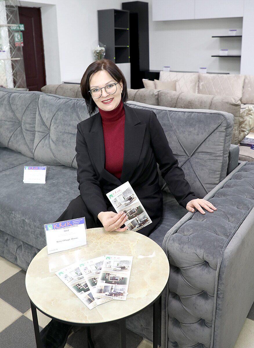 Заведующая торговым объектом Екатерина Скрипко сделала обзор предлагаемой продукции мебельного комбината с 85-летней историей.