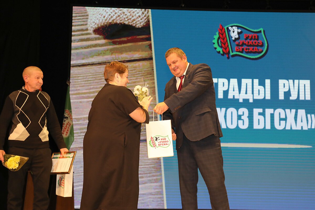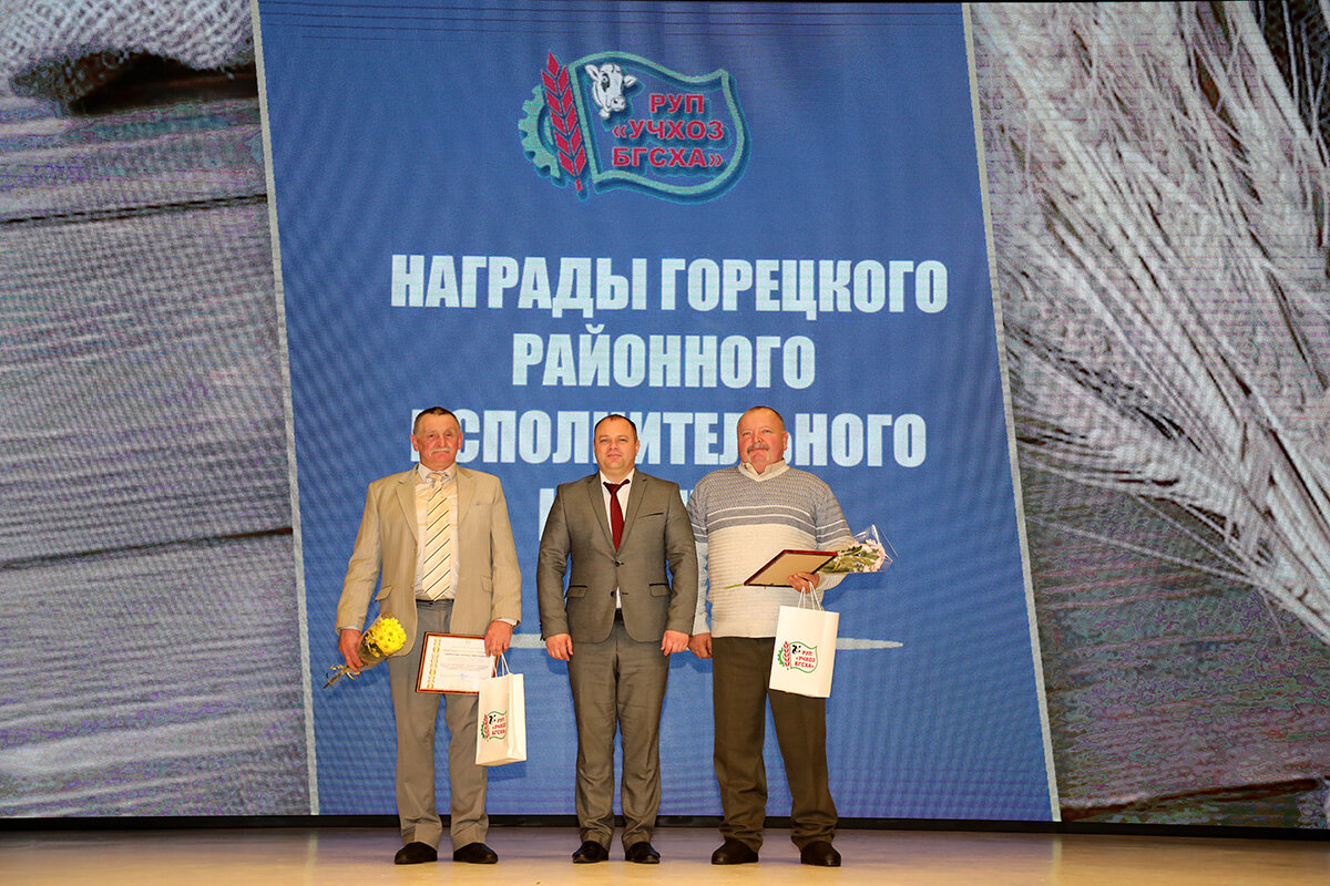 Председатель Горецкого районного исполнительного комитета, директор и профсоюзный лидер предприятия вручили награды лучшим работникам РУП «Учхоз БГСХА».
