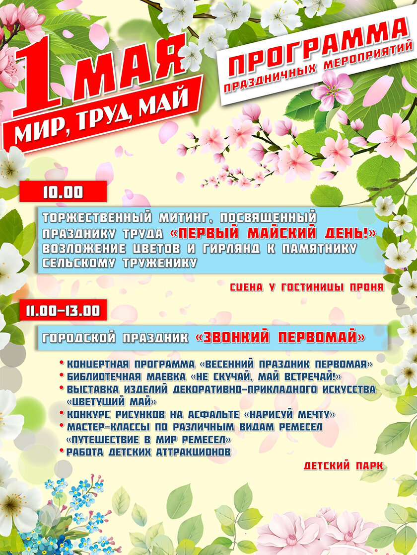 Торжественный митинг и городской праздник: программа мероприятий на 1 мая в Горках