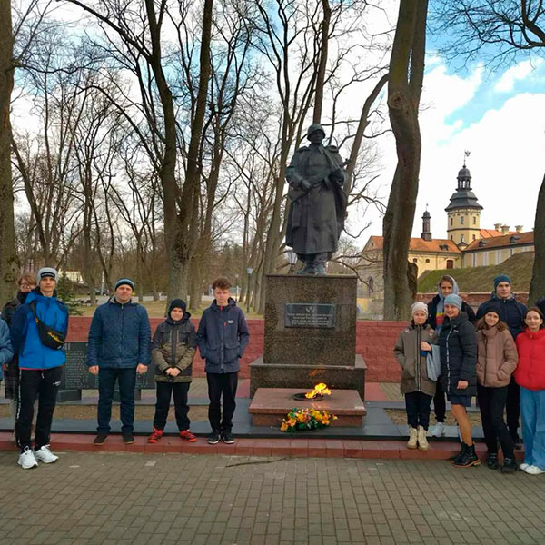 Гимназисты посетили памятник солдатам Великой Отечественной войны, который располагается на территории замка, и почтили память погибших минутой молчания.