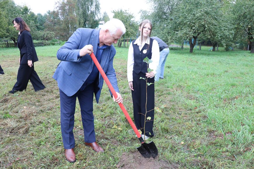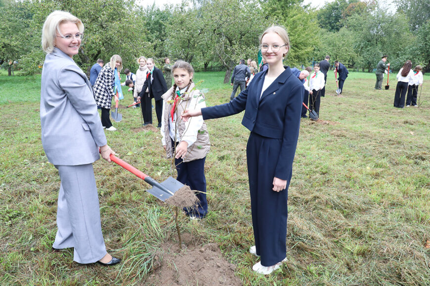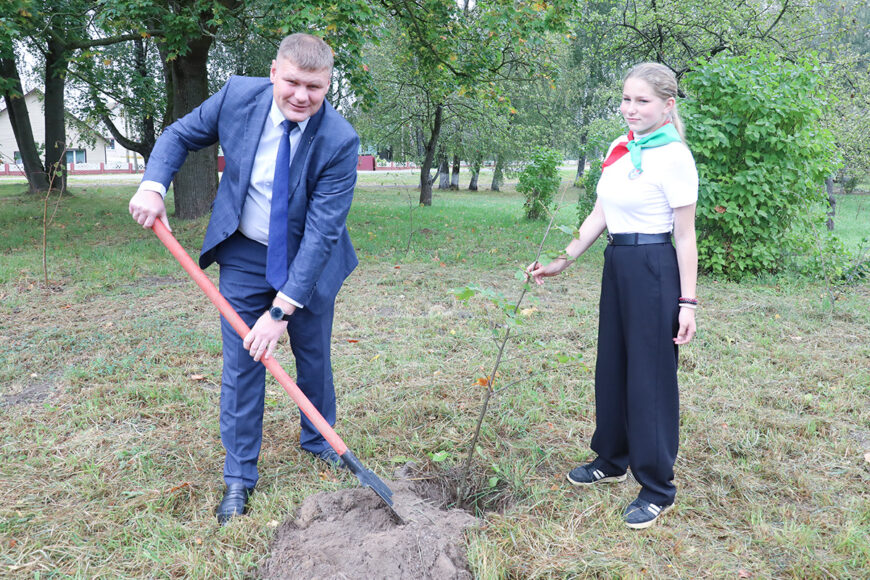 Участники автопробега и учащиеся Паршинской СШ высадили деревья в «Парке народного единства»