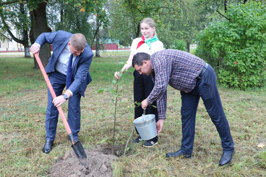 Далее участники автопробега и учащиеся Паршинской СШ дружно высадили деревья в «Парке народного единства». Это символ единения всех жителей Беларуси во благо нашей страны.