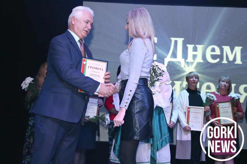 Поздравить учителей с наступающим профессиональным праздником и вручит им заслуженные награды пришли председатель райисполкома Михаил Гулый, депутат Палаты представителей Национального собрания Республики Беларусь Елена Колеснева, председатель районного Совета депутатов Максим Потапенко, заместитель председателя райисполкома Лариса Кривицкая, начальник финансового отдела райисполкома Оксана Орлова, начальник отдела по образованию Владимир Лебедев, председатель РК профсоюза работников образования и науки Леонид Егоренко.
