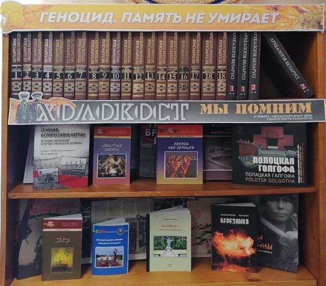 Также в рамках памятной даты в библиотеках сети оформлены выставки: «Холокост: трагедия, память, судьбы», «Холокост: память без срока давности», «Холокост: знать и помнить», «Холокост: память и предупреждение», «Жертвы нацизма», «Холокост — символ вечной скорби», «Холокост. Мы помним», «Холокост: трагедия и память». Эти выставки раскрывают многогранность трагедии, представляя разнообразное литературное наследие от мемуаров выживших, до исторических исследований, от художественной литературы до документальных материалов. Каждый желающий имеет возможность познакомиться с свидетельствами очевидцев и художественными произведениями, которые отражают трагические события периода Великой Отечественной войны. Это обширный обзор литературы, позволяющий глубже понять исторический контекст, а также эмоциональные и моральные аспекты этой темной страницы в истории человечества.