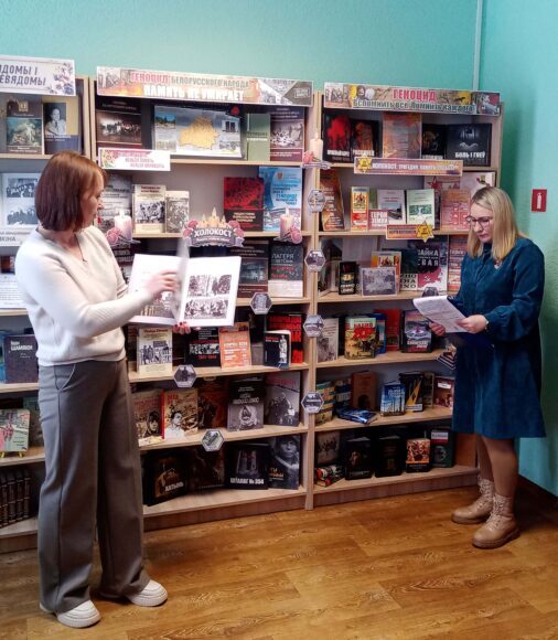В центральной библиотеке им. М. Горецкого сотрудники отдела обслуживания и информации организовали особое мероприятие — урок-реквием «Холокост: трагедия и страшный урок человечеству» для учащихся 6-го класса ГУО «Средняя школа №2 г. Горки». Библиотекари, основываясь на информации из книжных источников, рассказали ребятам о понятии Холокоста, его фактах на горецкой земле, привели примеры трагических страниц истории. Присутствующих впечатлила книга «Холокост. Горки и Горецкий район» местного краеведа Владимира Лившица. Также вниманию читателей были представлены книги серии «Геноцид белорусского народа», «Без срока давности. Могилевская область» и другие. Завершился урок-реквием минутой молчания в память о жертвах.