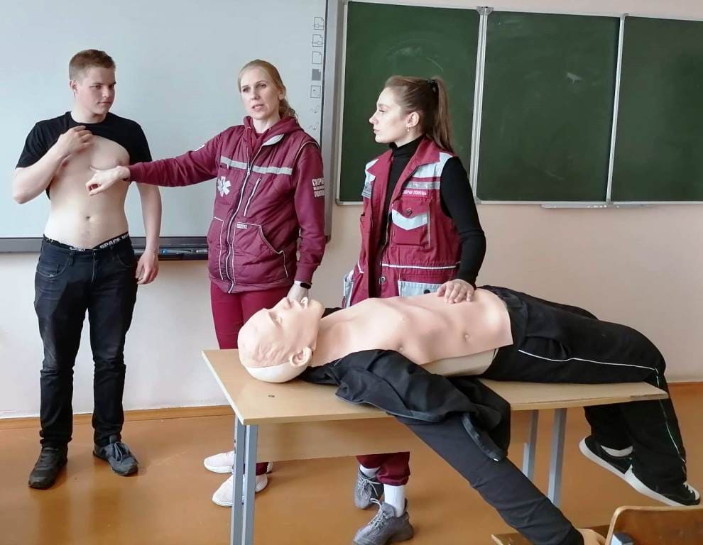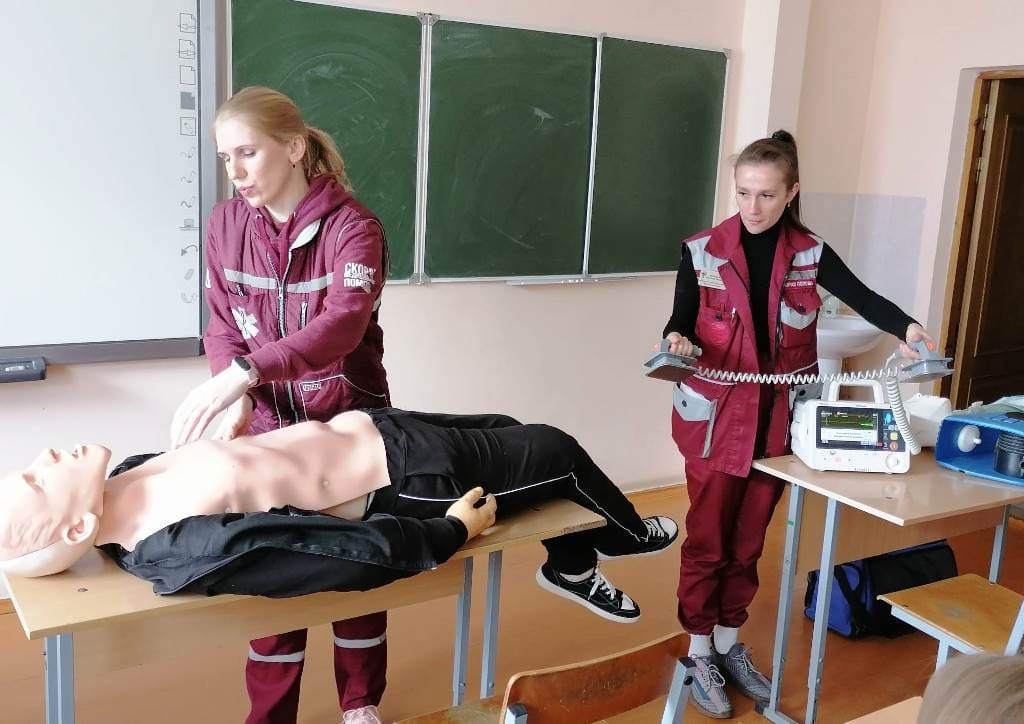 В рамках реализации проекта Министерства здравоохранения Республики Беларусь «Запусти сердце» для учащихся 10 классов средней школы № 2 г. Горки фельдшер выездной бригады отделения скорой медицинской помощи, выезжающей самостоятельно Тишкова Виктория Владимировна и фельдшер выездной бригады отделения скорой медицинской помощи Жгельская Анастасия Эдуардовна преподали уроки медицинской грамотности по факту остановки сердца и разъяснили, что нужно срочно делать, чтобы его завести: если у пострадавшего остановилось дыхание, необходимо немедленно приступить к сердечно-легочной реанимации, то есть сочетанию искусственной вентиляции легких и непрямого массажа сердца.