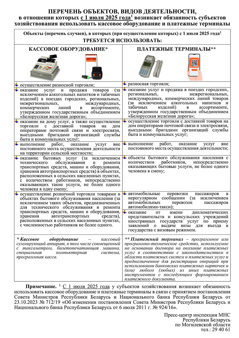 Узнали, кому придется обзавестись кассовым оборудованием и терминалом с 1 июля 2025-го Gorkinews 9 ноября 2023 13:36 Теги Беларусьпопулярторговля Предыдущая новость Следующая новость Пожар в Красулино унес жизни двух пенсионеров Нарушения при использовании бюджетных и внебюджетных средств в агролесотехническом колледже выявил КГК