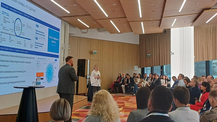 В конференции «Цифровая трансформация со Сбером» приняли участие около 500 человек в онлайн и офлайн-формате. Мероприятие посвящено цифровой трансформации бизнеса в разных отраслях. Своим опытом поделились менеджеры крупных компаний России и Беларуси. Среди них – Сбер, Газпром нефть, Почта России, Савушкин продукт, ГНИВЦ, Ренессанс жизнь, Торговый дом Нефтьмагистраль и Лидеры изменений. Участники рассказали о запуске и реализации цифровой трансформации: как настроить работу с инициативами, продуктами, данными, целями и людьми. Особое внимание уделили мотивации сотрудников и поддержке изменений.