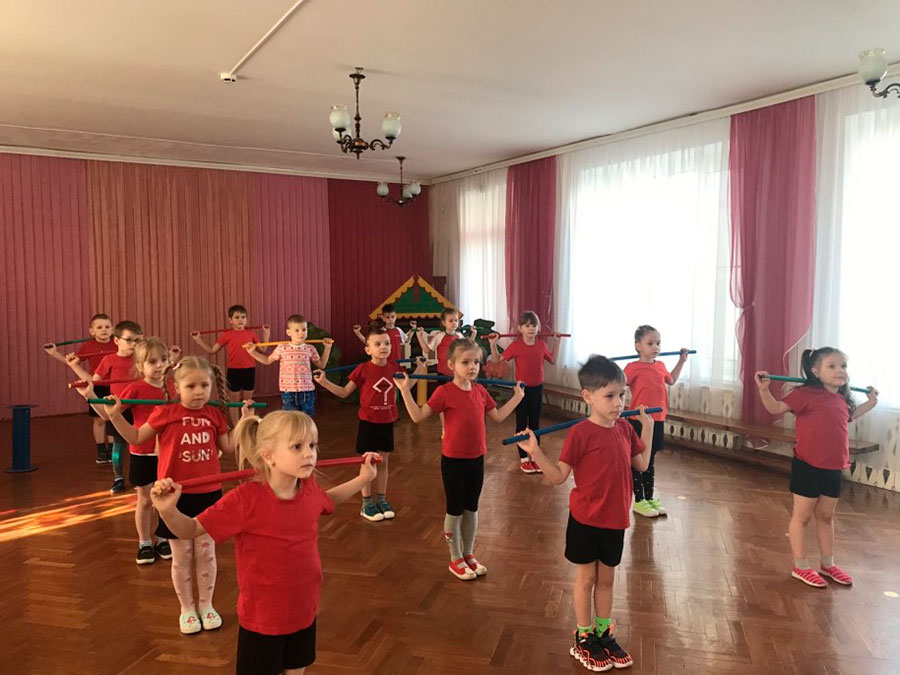 Ежедневно все ребята дошкольного учреждения принимают участие в утренней гимнастике.