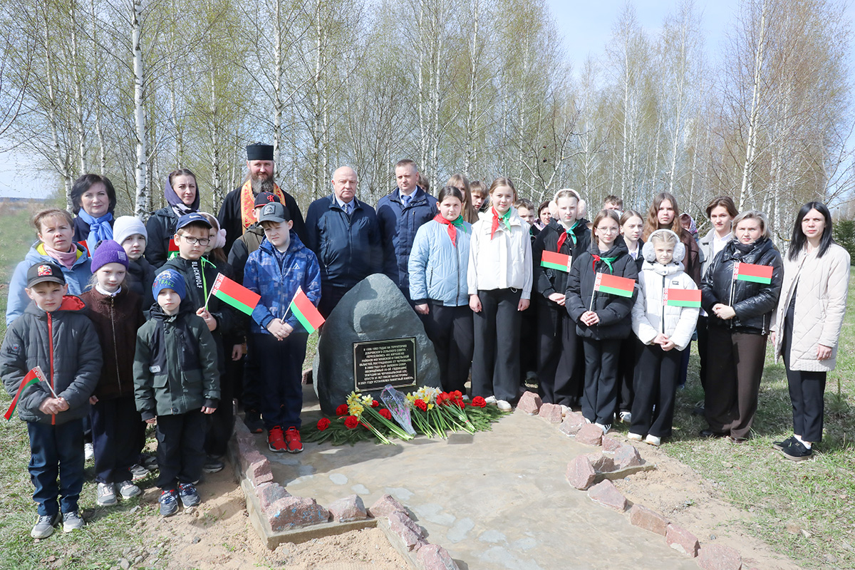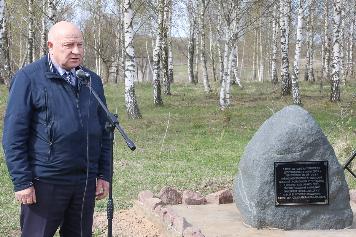 Он напомнил, что сквер в Комаровичах был заложен к 20-летию Чернобыльской трагедии, а к 35-летию здесь установили памятный камень. В этом году, благодаря оказанной помощи руководством «Агрокомбината Горки», была благоустроена дорожка к памятному знаку.