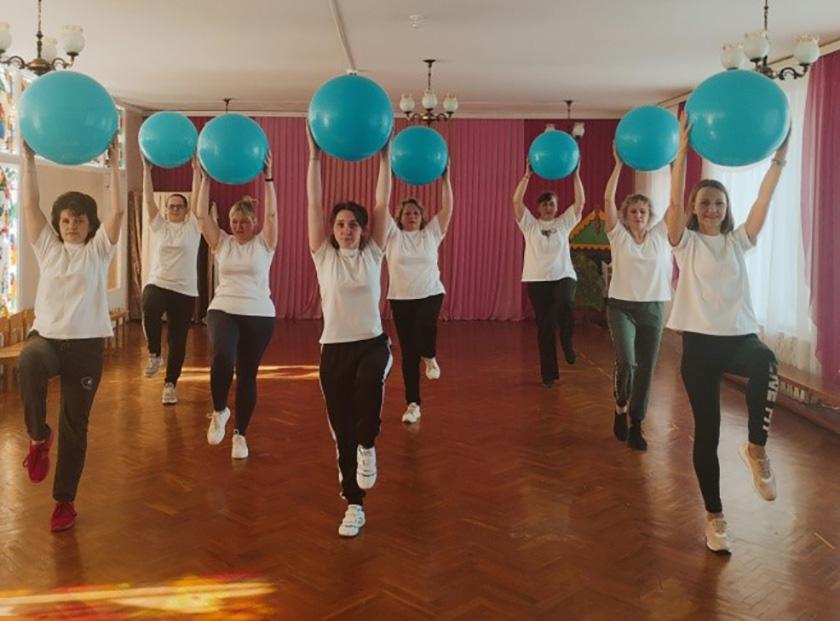 С работниками учреждения дошкольного образования проводится ежедневная производственная гимнастика. Что позволяет наполнится зарядом бодрости и положительными эмоциями на весь день.