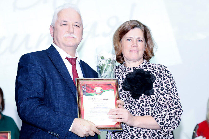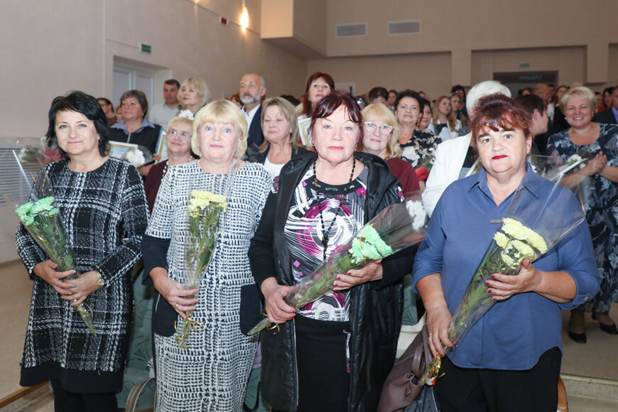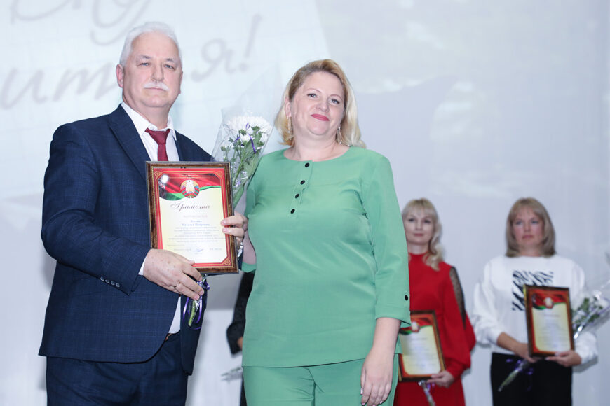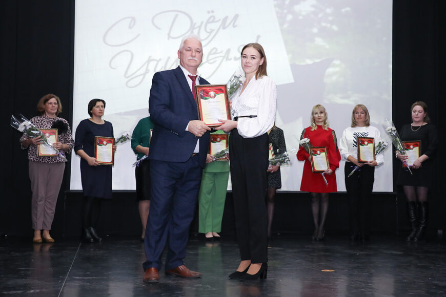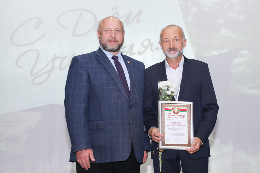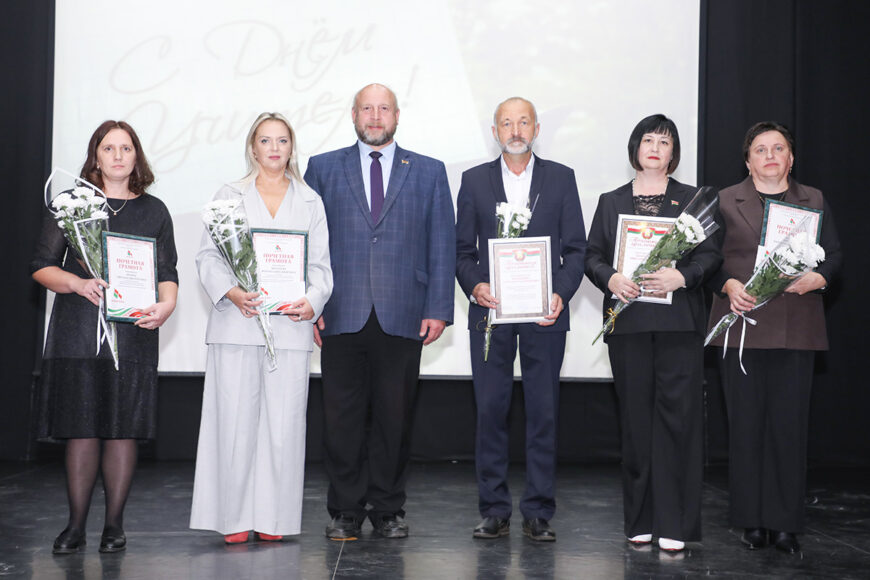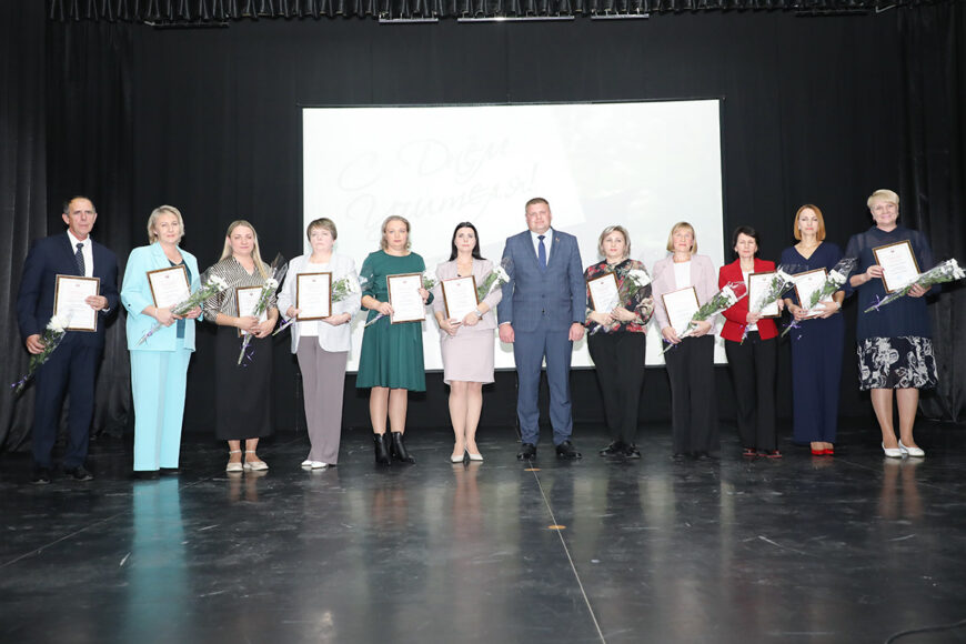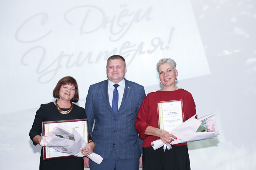 Так же лучших педагогов поздравили вручил им награды председатель районного Совета депутатов Максим Потапенко: «Учитель — это не просто профессия. Вне зависимости от того, молодой ли это педагог, который только начинает свой путь в профессии, или умудренный опытом десятилетий и обучающий учеников профессионал и аксакал. Учитель — это не просто человек, который дает знания. Это состояние души и возможность влиять на умы и души молодых людей. Вы не просто передаете знания. Новое время диктует новые подходы. И сегодня получить информацию очень легко. Казалось бы, появилась машина, которая буквально за один набор в поисковике запроса выдает вам массу информации. Учитель — это человек, который дает возможность почувствовать, что думал герой какого-то произведения. Учитель позволяет анализировать и находить правильное решение, казалось бы, в безвыходной ситуации. Поэтому сегодня, уважаемые дорогие учителя, разрешите мне от всего депутатского корпуса и членов общественной организации «Белая Русь» поздравить вас с вашим профессиональным праздником и пожелать вам крепкого здоровья, мира, добра, благополучия, оптимизма, исполнения самых заветных желаний. А самое главное, пытливых, неравнодушных, активных учеников и адекватных родителей».