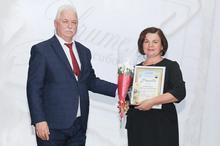 Слова искренних поздравлений педагогам адресовали педагогам лидеры районных общественных организаций Наталья Ковалева и Сергей Сивуха и вручили им награды.