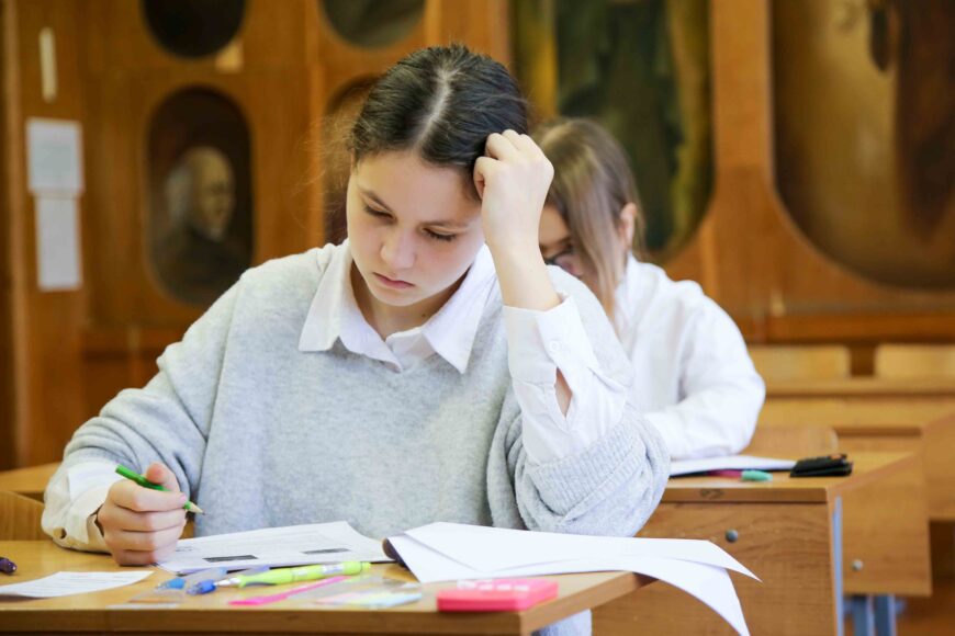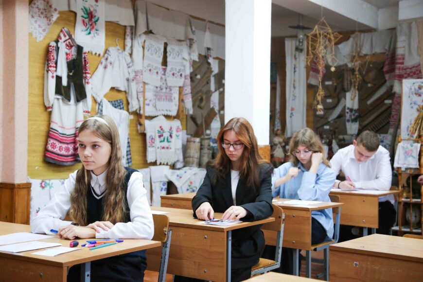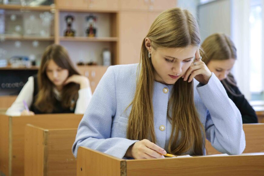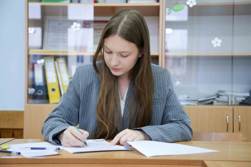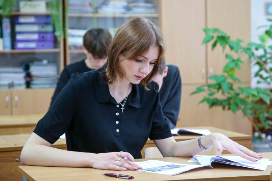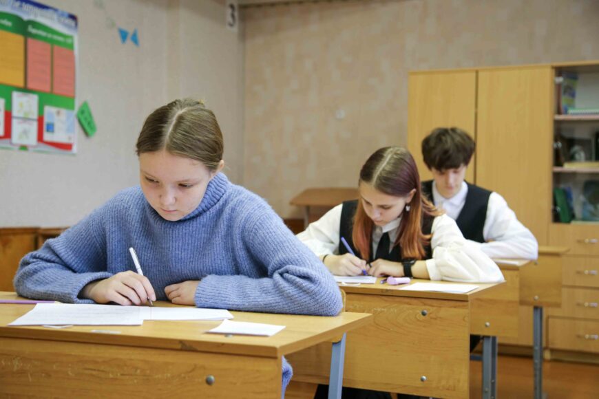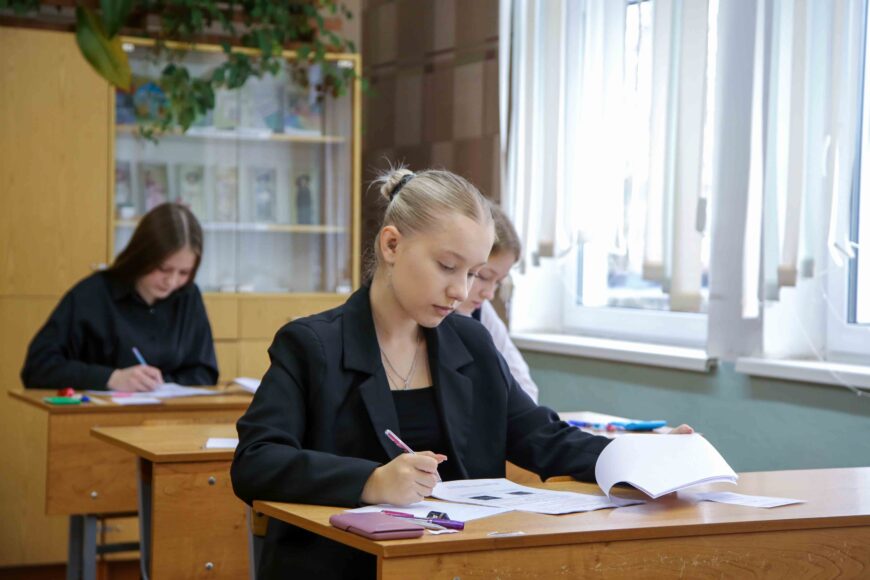 Затем школьники разошлись по аудиториям, заняли рабочие места, подготовили необходимые материалы. Вскоре им раздали задания, и они приступили к их выполнению.