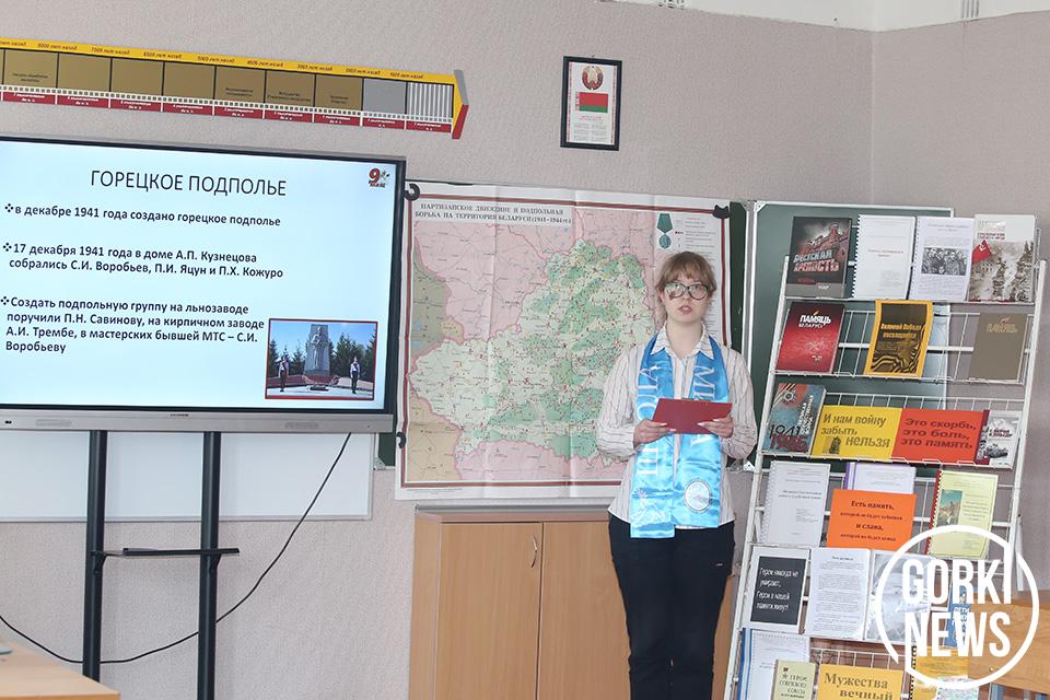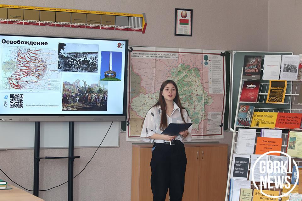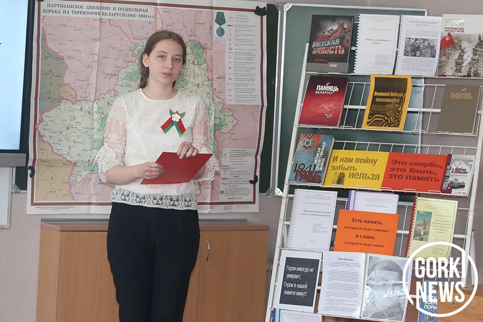Участники смотрели военные кинохроники и фотоснимки. Гимназисты рассказывали о различных акциях, экскурсиях по знаковых местам Беларуси, вспоминали земляков-героев. Затронули тяжелые исторические фаты по геноциду белорусского народа.