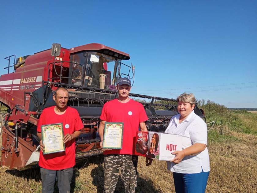 В ОАО «Горецкая райагропромтехника» поздравления и слова благодарности от руководителя сельскохозяйственной организации Натальи Сенчиловой и председателя районной профсоюзной организации работников АПК Елены Чаплыгиной принимали комбайнеры- тысячники Олег Марченко, в активе которого намолот зерна в 1142,76 тонн, и Руслан Космачев. Он выгрузил из бункера комбайна 1080.48 тонн.