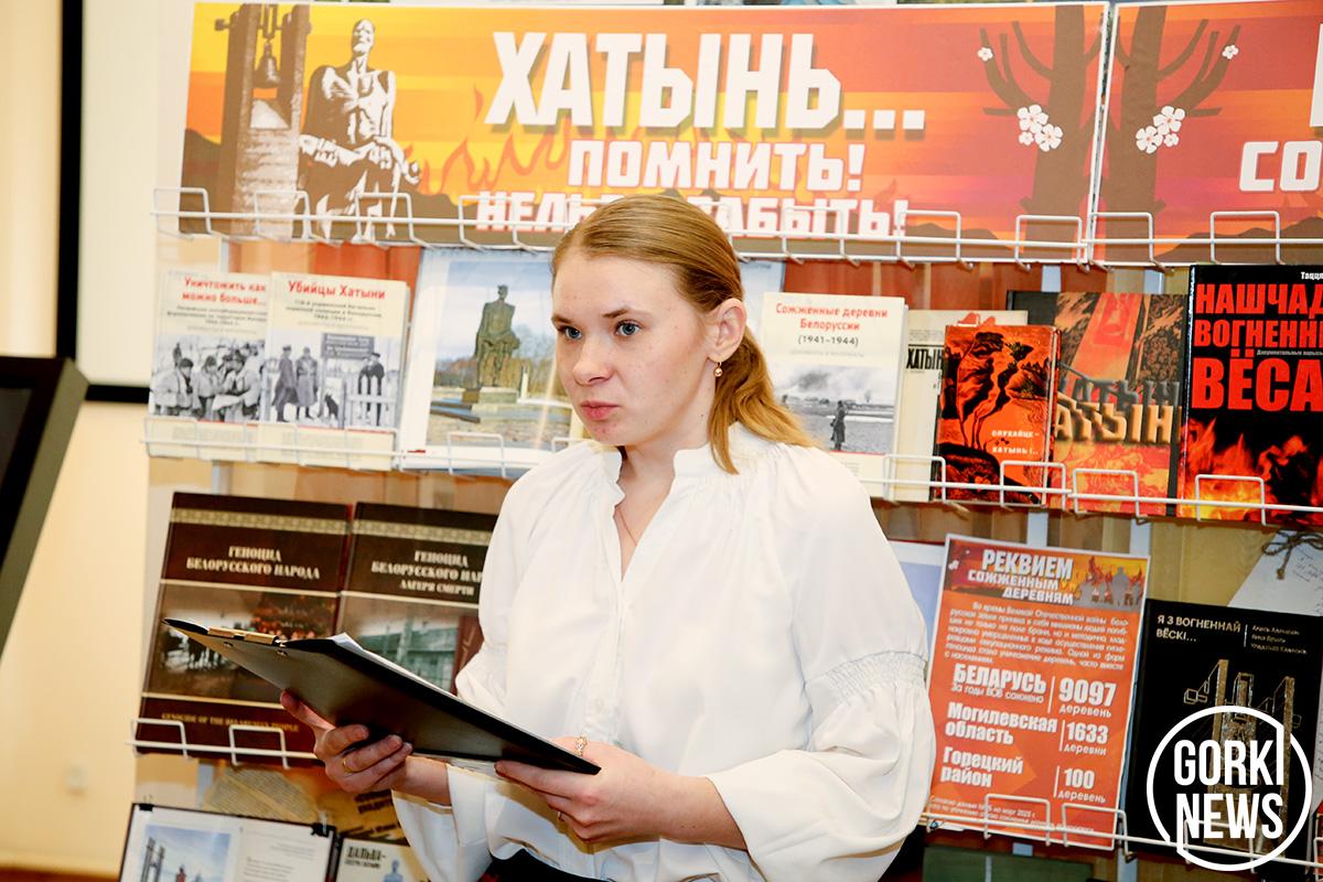 Так, на базе Горецкого районного историко-этнографического музея сегодня работала диалоговая площадка «Хатынь. Трагедия и память» с участием председателя районного Совета депутатов Максима Потапенко, прокурора Горецкого района Александра Тарасюка, председателя районного совета ветеранов Александра Кривенкова, специалистов отдела идеологической работы и по делам молодежи райисполкома, отдела по образованию, а также молодёжи, работающей в учреждениях образования района.