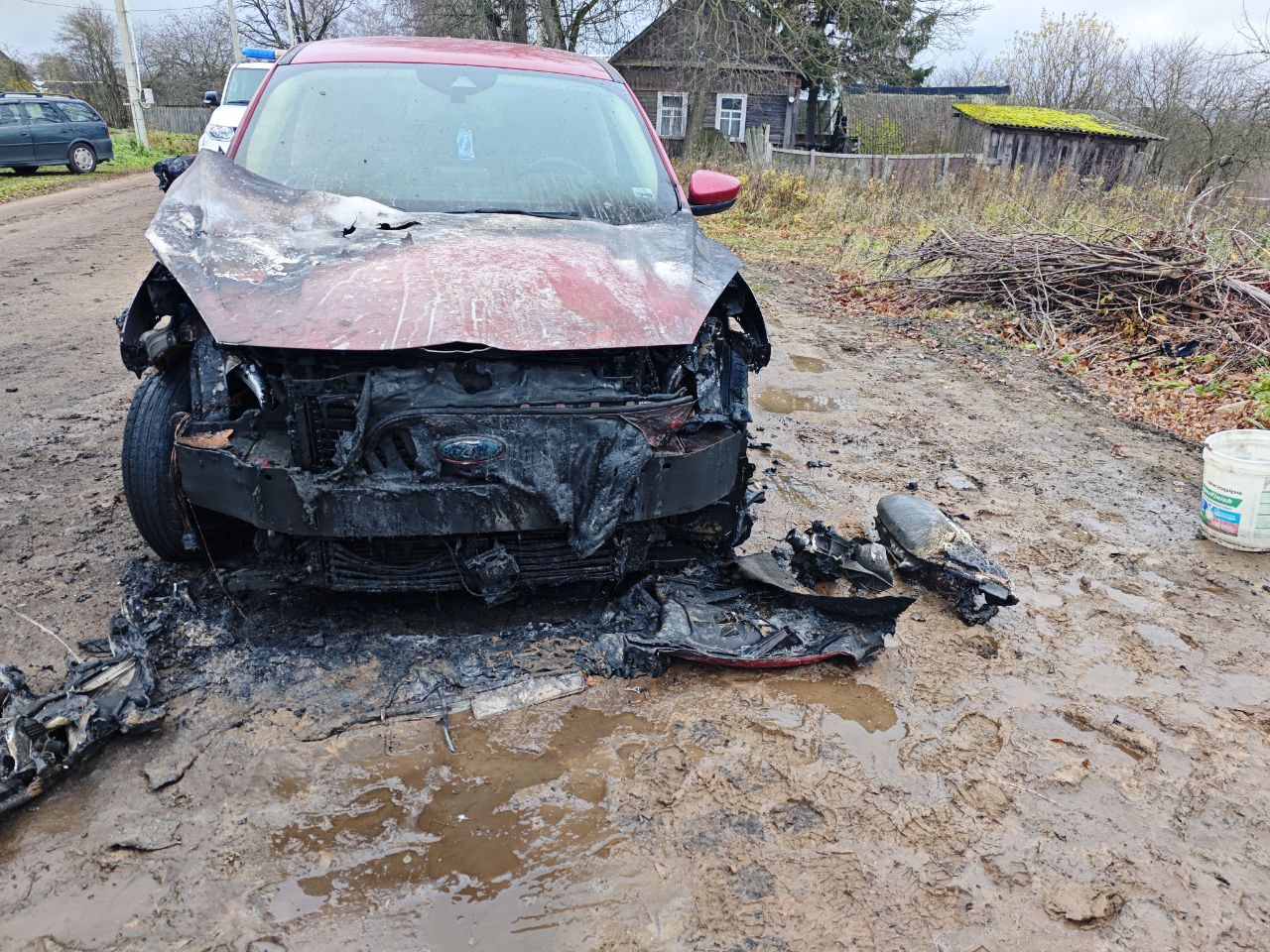 Ранее, 1 ноября, в седьмом часу вечера диспетчер РОЧС принял сообщение от очевидца о том, что горит легковой автомобиль в Горках. Огненное ЧП разворачивалось на улице Строителей.