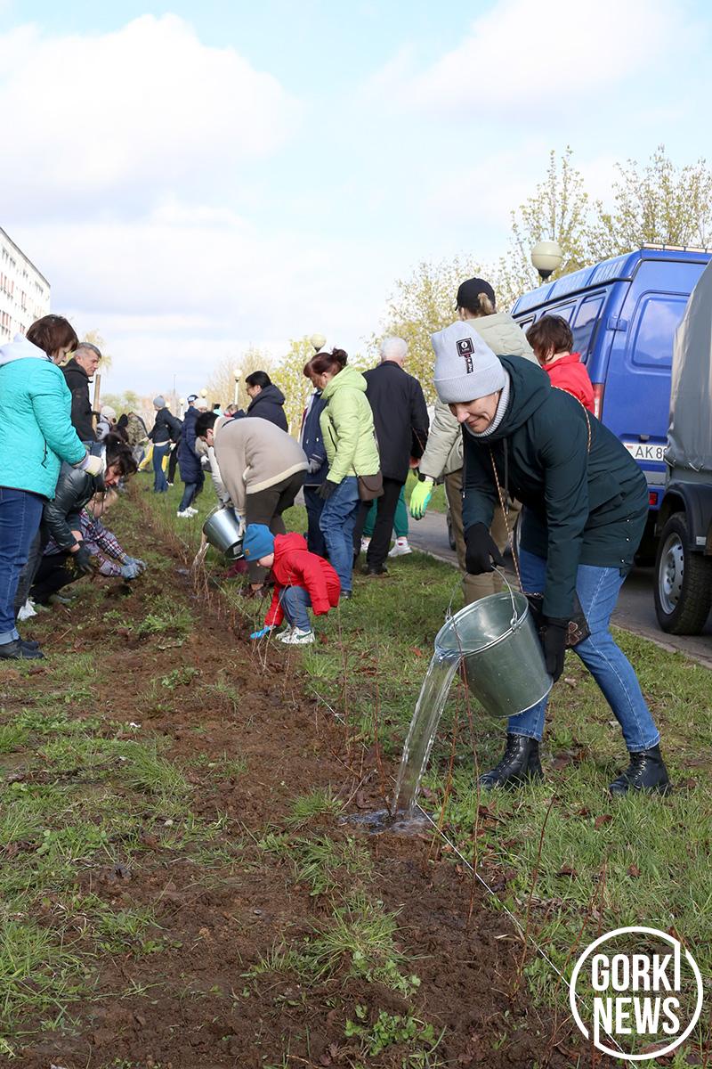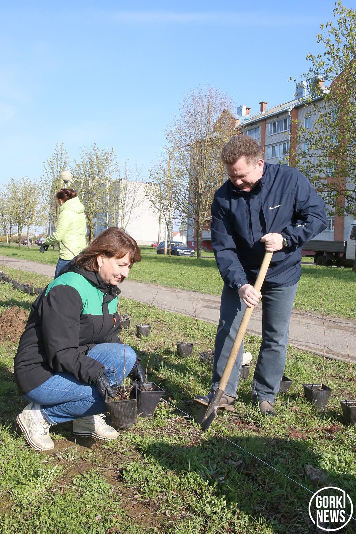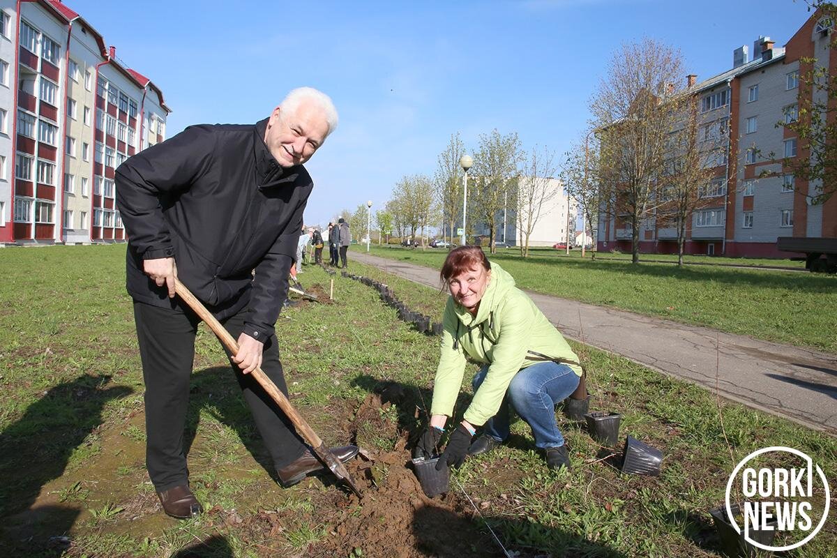 По проспекту Димитрова работники райисполкома во главе с председателем Михаилом Гулым, представители депутатского корпуса, руководители организаций и учреждений проводят озеленение территории вдоль пешеходной дорожки. Здесь высаживают зелёную изгородь — более двухсот декоративных кустов дейции шершавой, которая будет цвести красивыми белыми цветами.